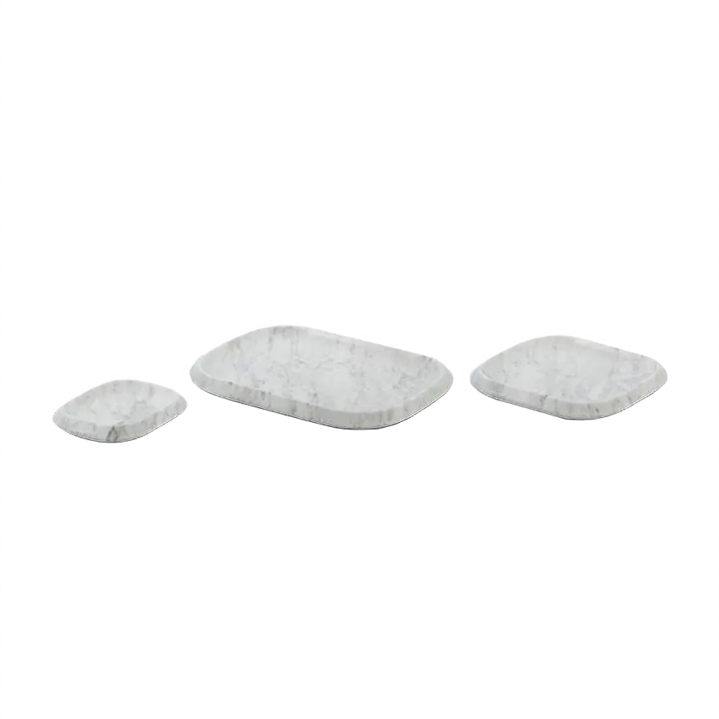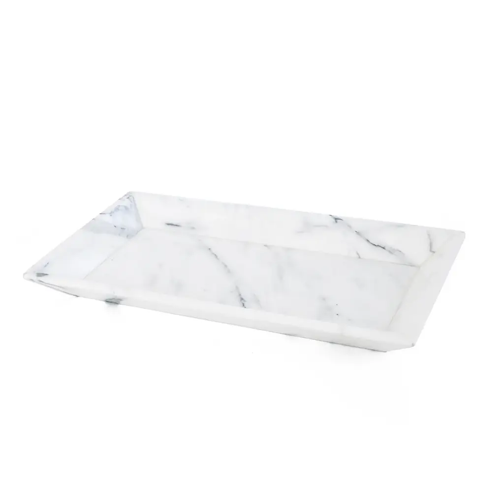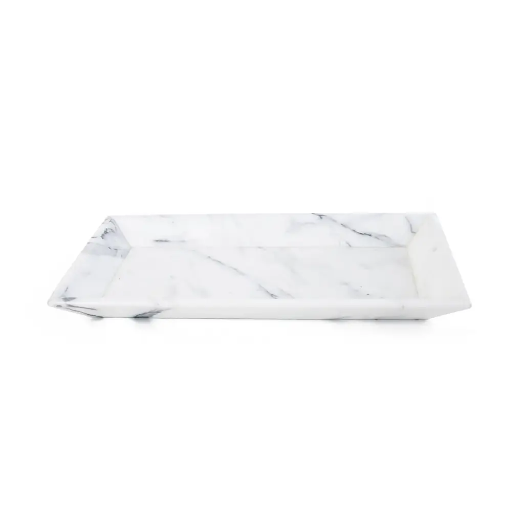 Merging functionality and superb aesthetics, this rectangular tray in Carrara marble is an unmissable tableware item that strikes with its simple design. The characteristic gray veining gracing its surface is its unique and more precious decoration, making each piece different from one another.