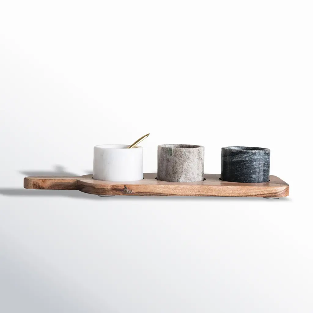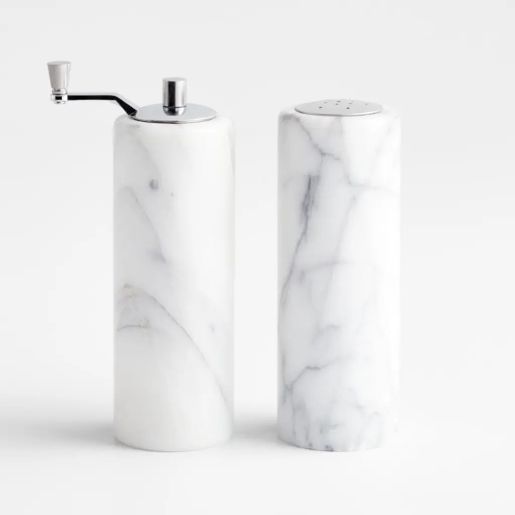 Carrara Marble Set With Tray, Salt And Pepper Shakers