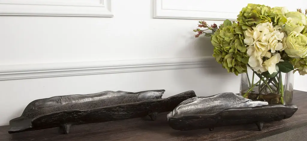 These cast aluminum trays feature unique, organic shapes finished in dark black nickel.