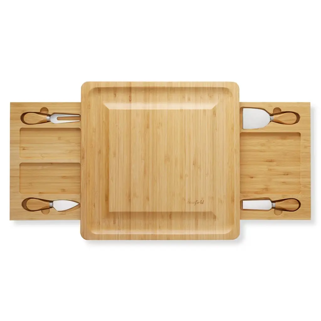 Casafield Bamboo Cheese Cutting Board, Charcuterie Board With Stainless Steel Knives And Slide-out Snack Trays