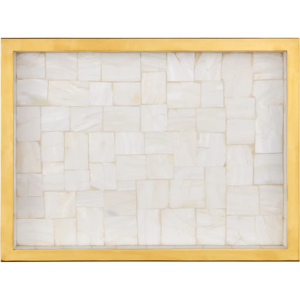 The luxe feel of a timeless material make the Casey Mother of Pearl Tray Set a striking display of fine artisanship. This elegant set includes a larger and smaller decorative tray, both crafted from shimmering mother-of-pearl and accented with rich gold details. Perfect for serving, organizing, or displaying treasured items, these trays exude timeless sophistication and will elevate any gathering with their radiant beauty.