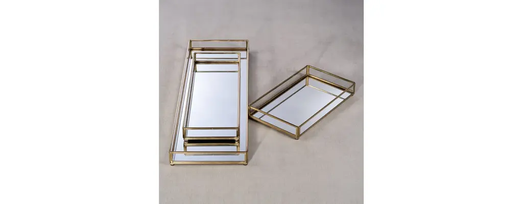 Cava Metal-Edged Mirrored Glass Vanity Tray, Medium