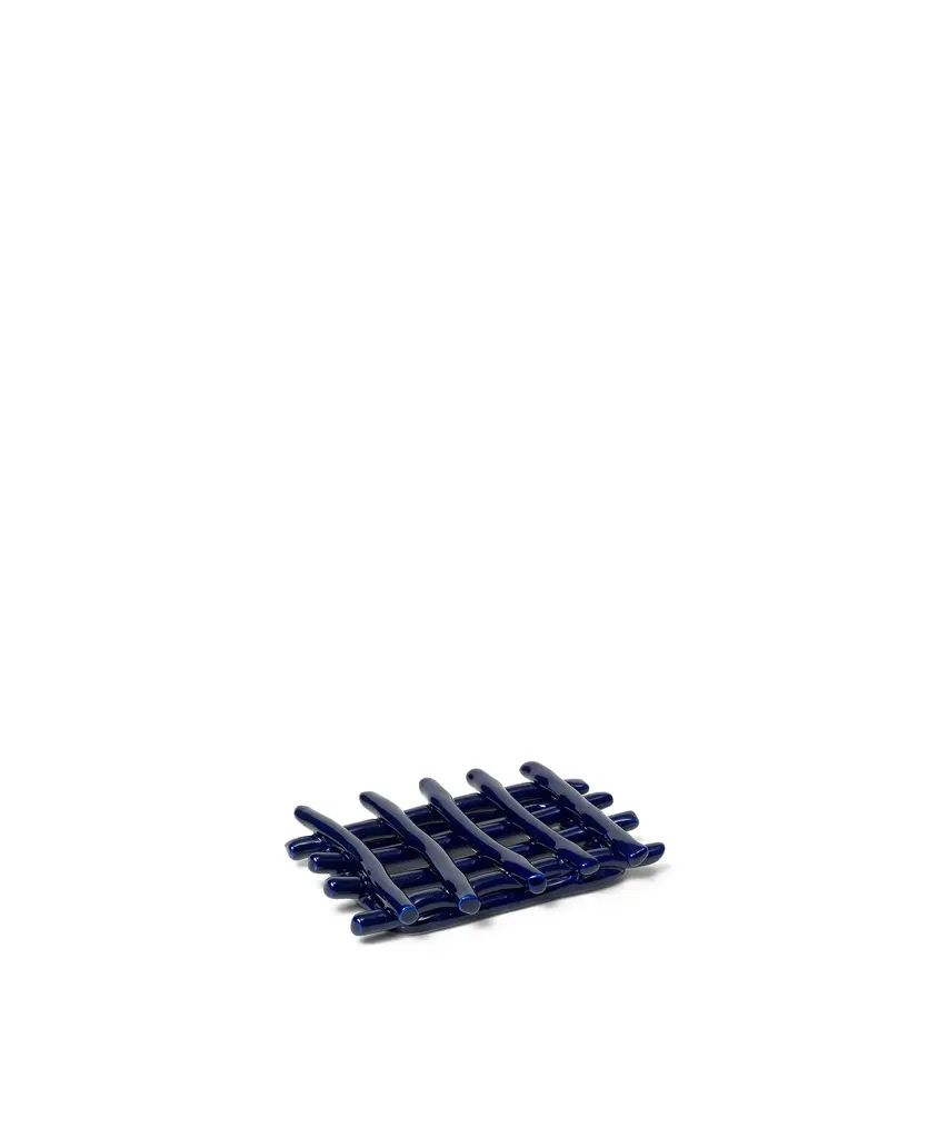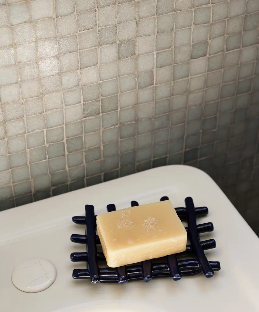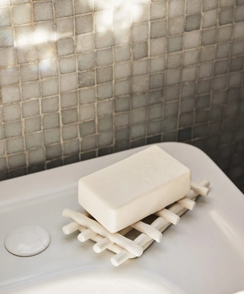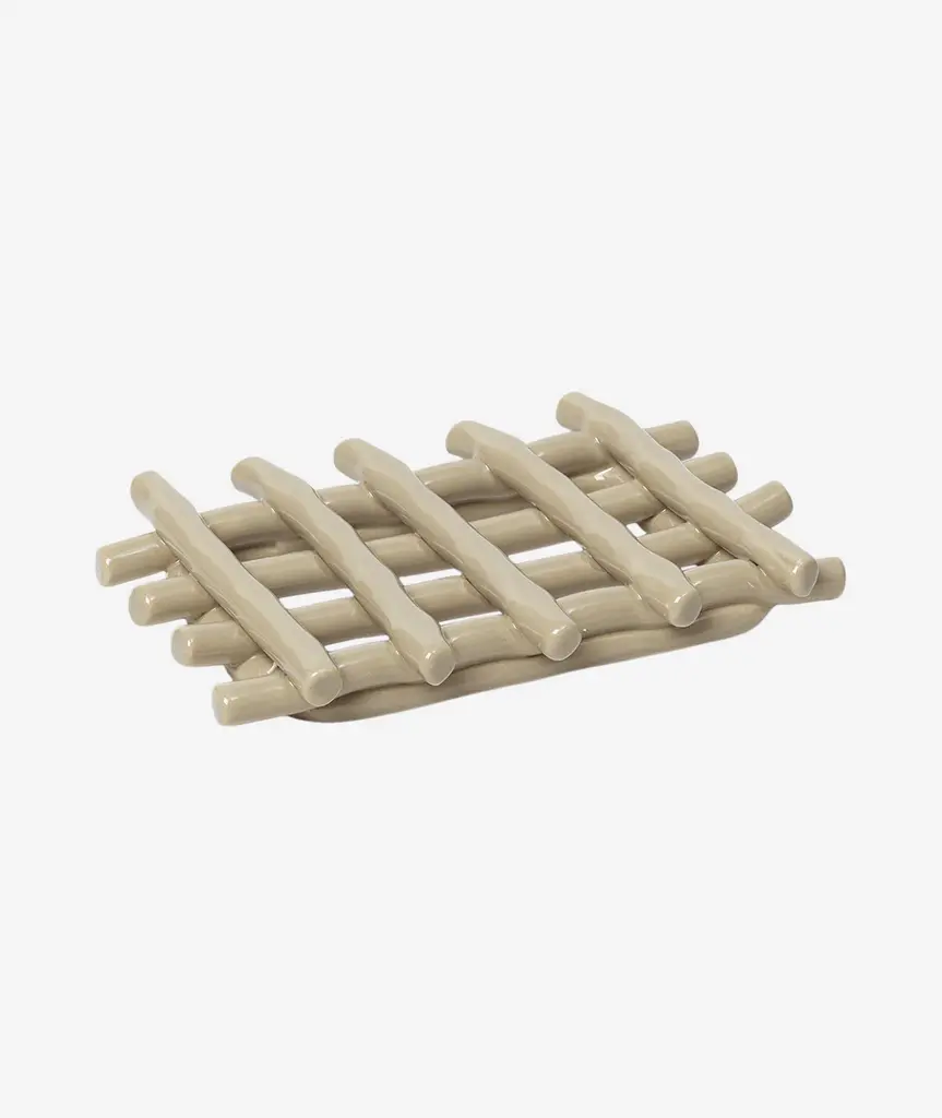 Bringing the expression of traditional weaving techniques to pottery, the handmade Ceramic Soap Tray recreates the familiar feel of woven objects. The unique pattern lends an artistic expression to the petite tray, while the ceramic material ensures that it is ideal for holding a bar of soap next to your kitchen or bathroom sink. Designed and produced by the Copenhagen-based studio Ferm Living.