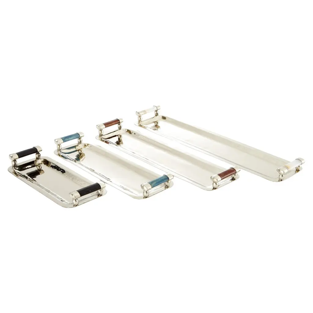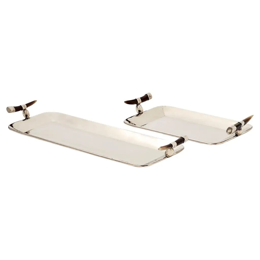 Cerro Rectangular Small & Medium Trays, Horn & Alpaca Silver