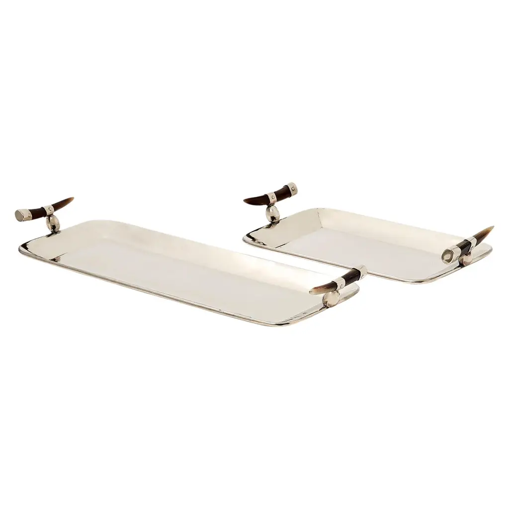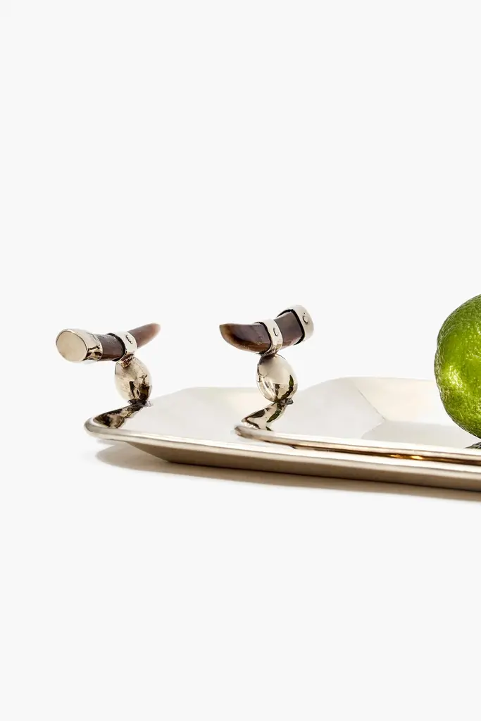 Not everything is organic in northern Argentinean hills. As we cast our eyes on the landscapes, we also find geometry that makes us travel with our imagination. Mini square, rectangular, semi oval and round trays, sugar bowls and cream pitchers. The materials are goat horn, bone and alpaca.Our pieces are made by hand. One of a kind.Natural horn may vary in color.