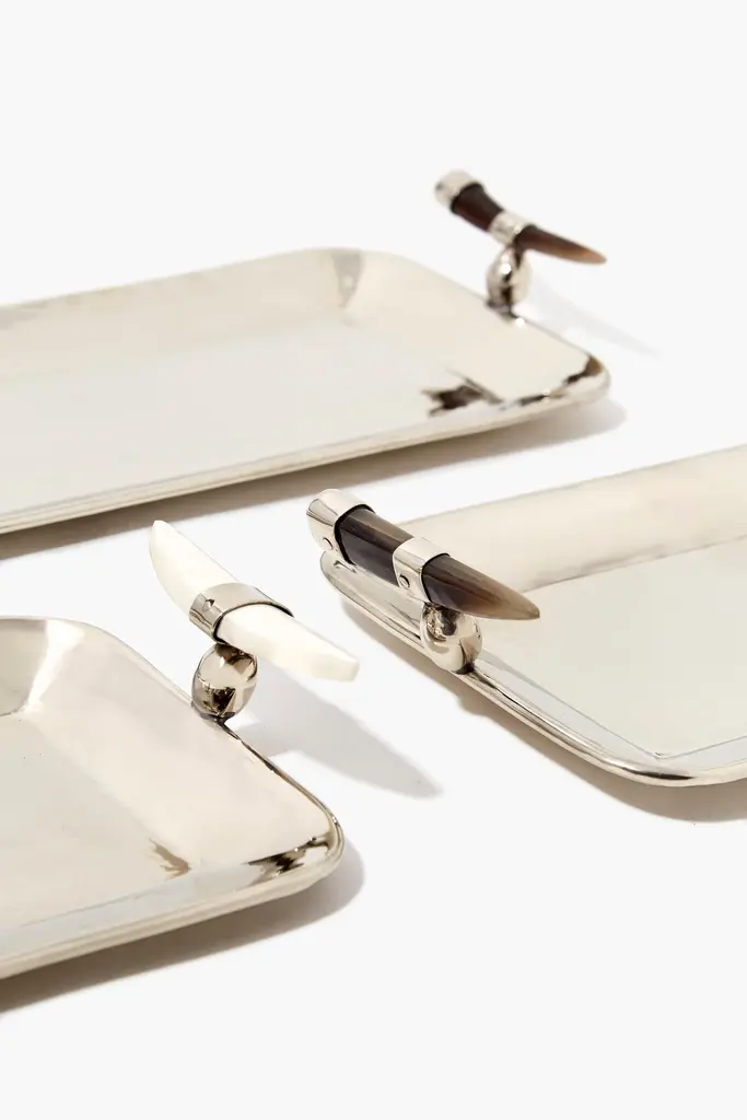 Cerro Set Of Rectangular Small & Large Trays, Alpaca Silver