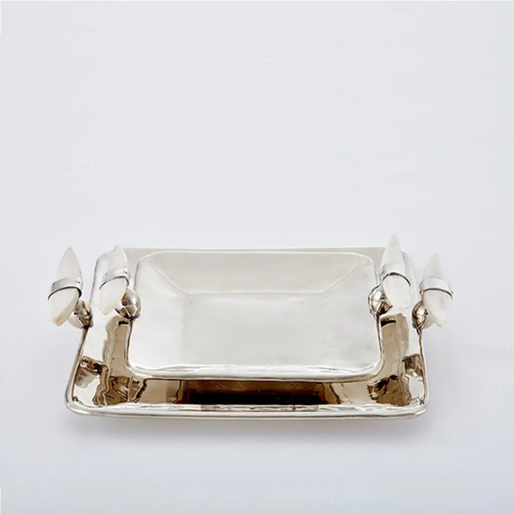 Cerro Set Square Medium And Large Trays, Polished White Bone & Alpaca Silver