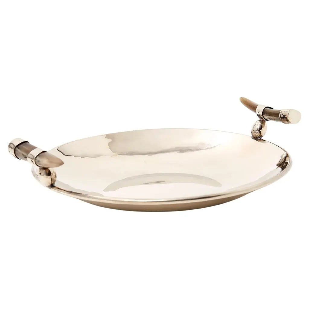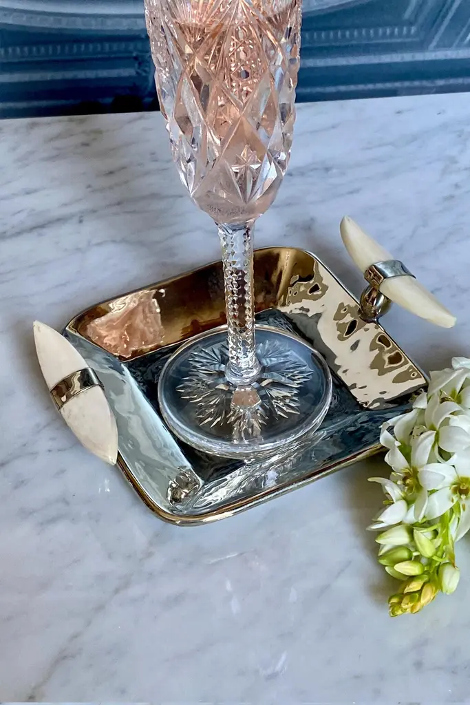 Measures: 5.3" x 5.3"7.2" x 7.2"Not everything is organic in northern Argentinean hills. As we cast our eyes on the landscapes, we also find geometry that makes us travel with our imagination. Mini square, rectangular, semi oval and round trays, sugar bowls and cream pitchers. The materials are goat horn, bone and alpaca.Our pieces are made by hand. One of a kind.Natural Bone may vary in color.