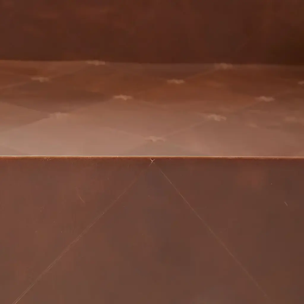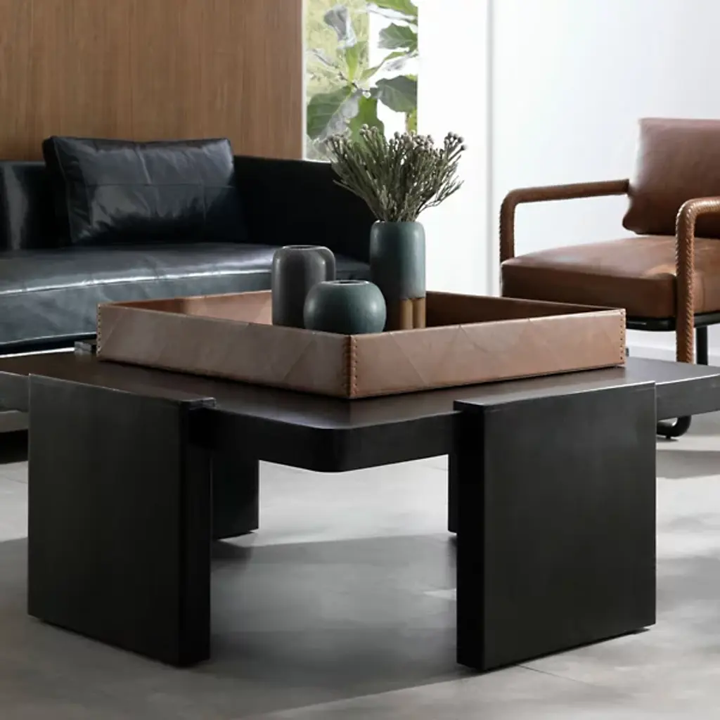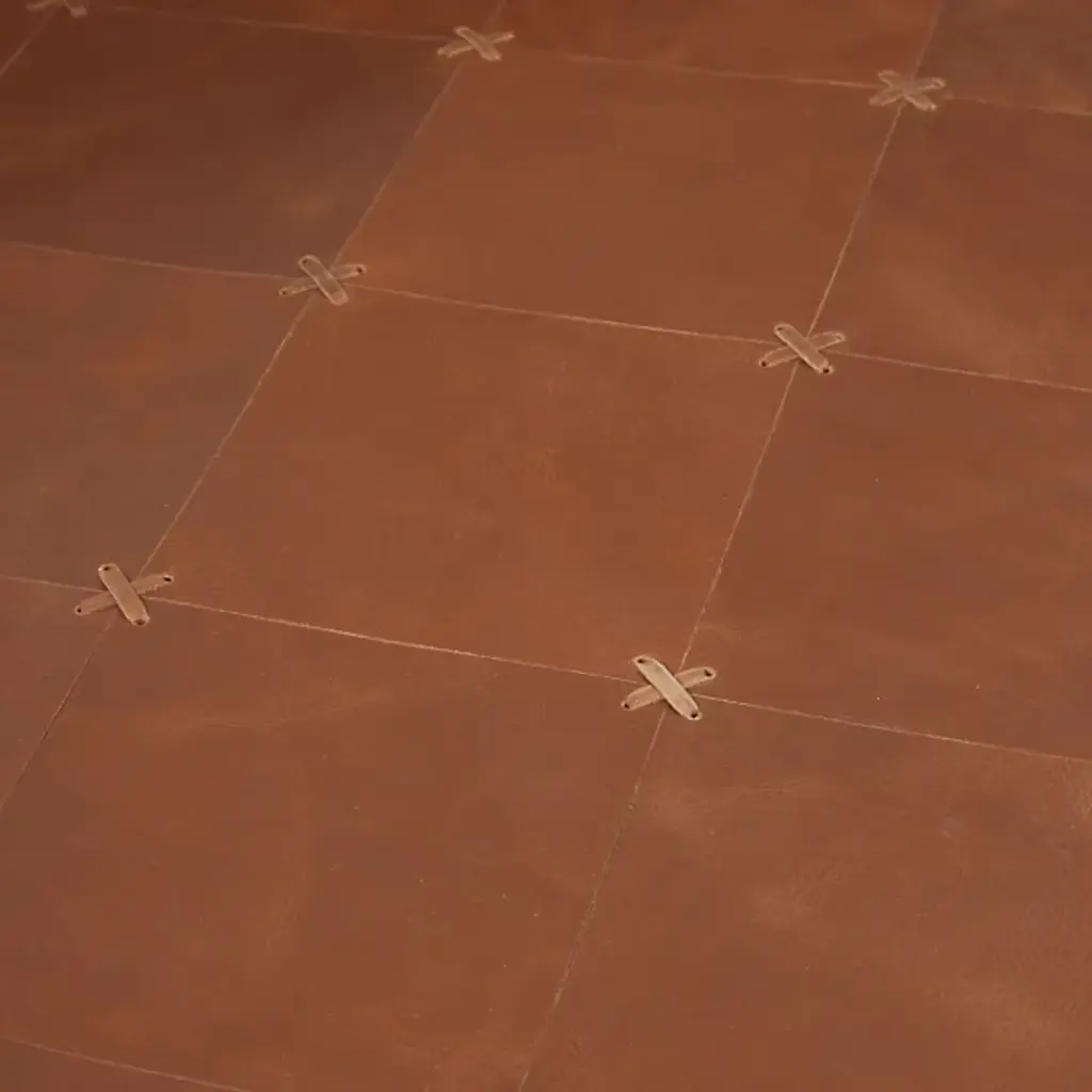 Crafted from cognac leather, the Channing Tray from Arteriors draws inspiration from natural stitching and patchwork techniques. Its elegant craftsmanship is accentuated by cross-hatched details that emphasize minimalistic lines. Each piece features a unique finish, ensuring a distinctive addition to any space, perfect for both decorative display and functional use.