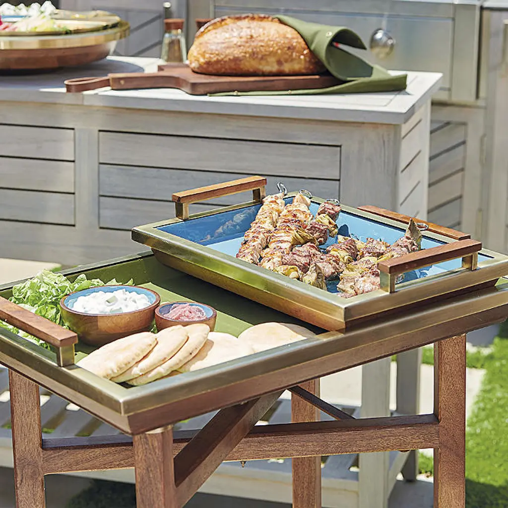 Beautifully crafted of walnut-finished mango wood with a blue colored enamel interior, this versatile serving tray isn’t just functional, it’s a statement piece that elevates any dinner party or cookout. The colored enamel interior adds a pop of style and makes cleanup a breeze. Crafted of durable walnut-finished mango wood, metal and enamel Blue colored enamel interior for added color and easy cleanup Cast-metal handles with walnut-finished wood inlay for effortless transport from the grill to the table Nests with the Chef Symon Large Serving Tray Designed to be heat-resistant, although we recommend allowing dishes to cool slightly after being removed from the oven for best results Hand wash only For indoor or outdoor use A Frontgate exclusive. At Frontgate, our primary focus is quality. We guarantee that every product we sell will stand up to the supreme test – our customers' satisfaction. To learn more about our policies, visit our Shipping & Processing, Returns & Exchanges and Warranty & Price Guarantee pages. Beautifully crafted of walnut-finished mango wood with a blue colored enamel interior, this versatile serving tray isn’t just functional, it’s a statement piece that elevates any dinner party or cookout. The colored enamel interior adds a pop of style and makes cleanup a breeze. Crafted of durable walnut-finished mango wood, metal and enamel Blue colored enamel interior for added color and easy cleanup Cast-metal handles with walnut-finished wood inlay for effortless transport from the grill to the table Nests with the Chef Symon Large Serving Tray Designed to be heat-resistant, although we recommend allowing dishes to cool slightly after being removed from the oven for best results Hand wash only For indoor or outdoor use A Frontgate exclusive. At Frontgate, our primary focus is quality. We guarantee that every product we sell will stand up to the supreme test – our customers' satisfaction. To learn more about our policies, visit our Shipping & Processing, Returns & Exchanges and Warranty & Price Guarantee pages.