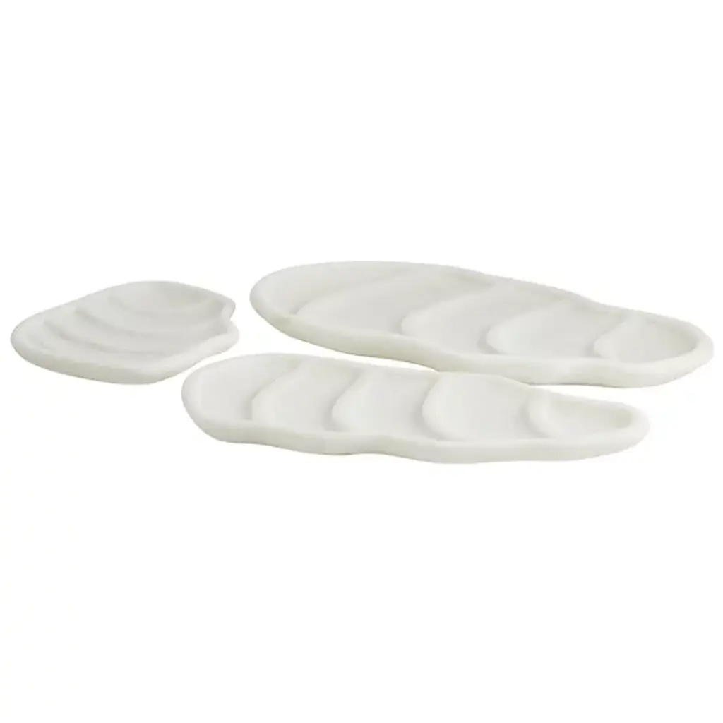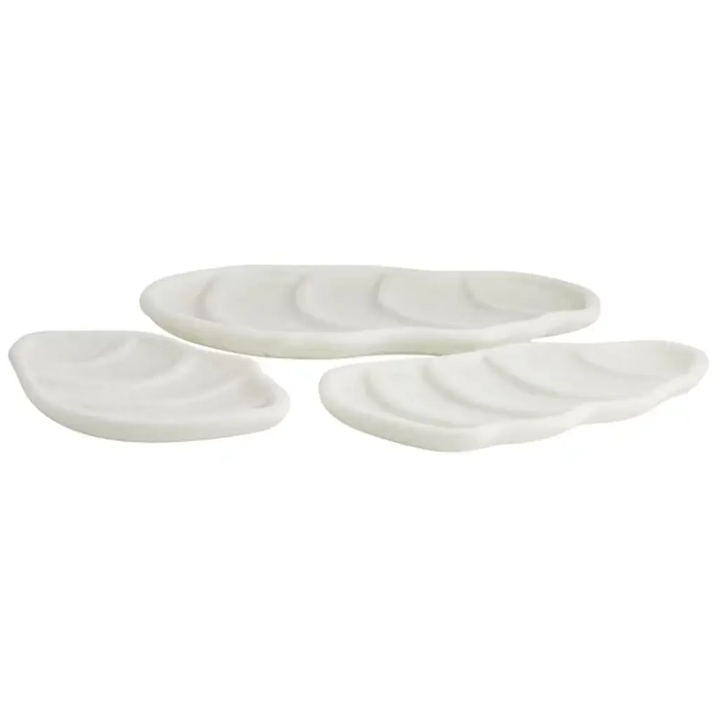 Inspired by seashells collected along the shore, the Chesapeake Trays, Set of 3 from Arteriors showcases its natural beauty. Crafted from ivory ricestone composite, each tray features a unique, hand-shaped design. These distinctive accessories can be displayed together for a cohesive look or styled separately to add an organic touch to different areas of your home. Each piece varies in finish, enhancing their individual charm and appeal.