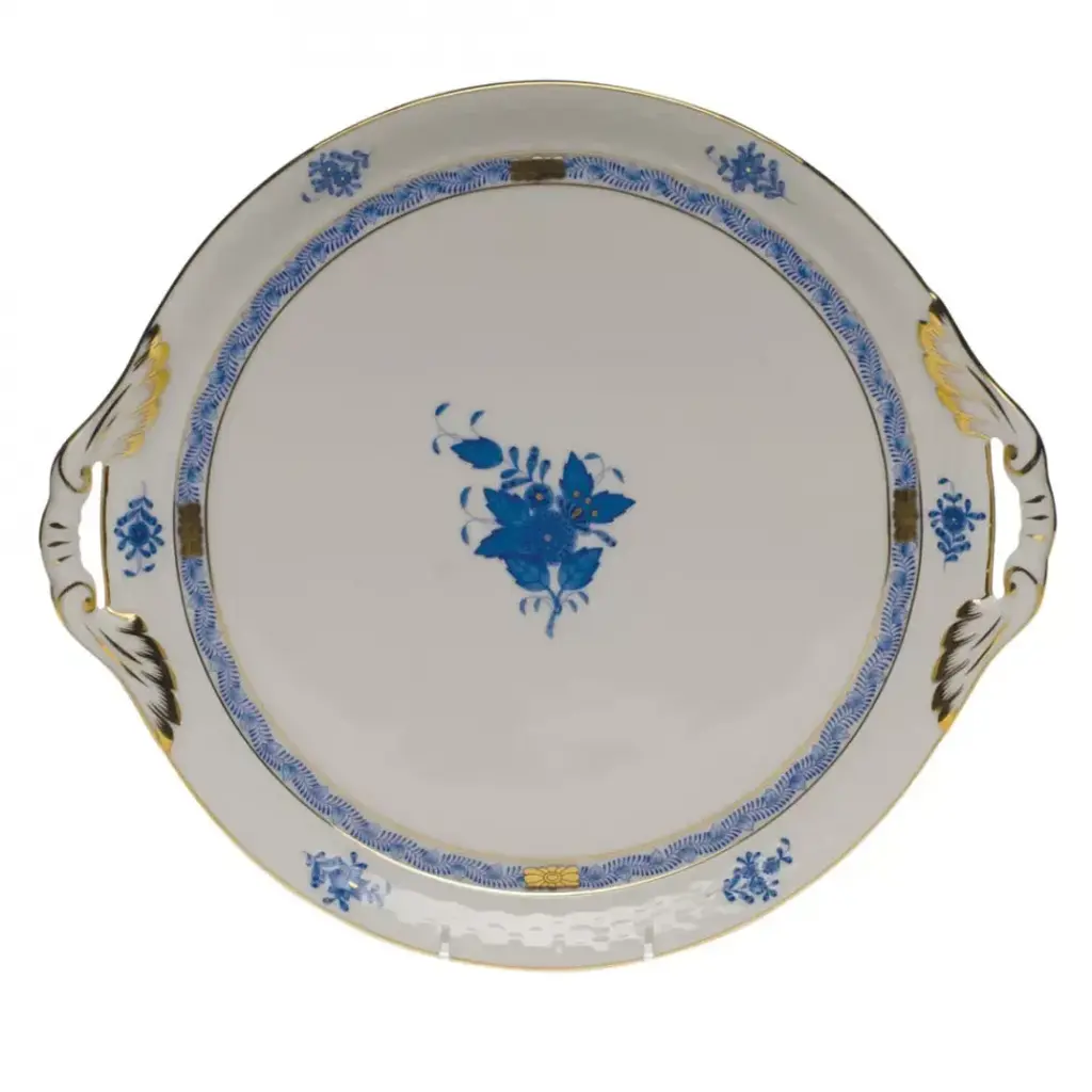 A Herend classic. Originally created in 1930 for Count Albert Apponyi, the pattern features a center motif of a stylized peony surrounded by a garland of leaves with 24K gold rosettes. It is available in multiple color options. Hand painted in Hungary. Now the biggest porcelain manufactory in Europe, Herend was founded in 1826 to produce earthenware in the small Hungarian village for which it was named. At the time, Hungary was flooded with low-cost pottery, but in 1839, Mor Fischer became the Manufactory’s new owner and he decided to focus on producing dinnerware replacement pieces for Europe’s royal families to complement their valuable porcelain patterns from Germany and the Far East. As his client base grew, Fischer commissioned his artists to begin designing dinnerware patterns of their own. Queen Victoria’s 1851 purchase of a large set for Windsor Castle was a milestone, setting the stage for aristocrats throughout Europe to clamor for Herend in their estates. In the 1850s, Herend added meticulously-crafted figurines to its creations. Herend’s trademark fishnet pattern, which is widely recognized and prized as Herend’s signature design, started in 1858 when an artist who was intrigued with a Chinese plate’s fish scale design painted it onto a rooster figurine to imitate feathers.