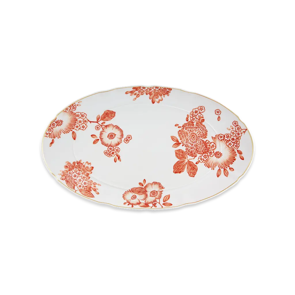 A Herend classic. Originally created in 1930 for Count Albert Apponyi, the pattern features a center motif of a stylized peony surrounded by a garland of leaves with 24K gold rosettes. It is available in multiple color options. Hand painted in Hungary. Now the biggest porcelain manufactory in Europe, Herend was founded in 1826 to produce earthenware in the small Hungarian village for which it was named. At the time, Hungary was flooded with low-cost pottery, but in 1839, Mor Fischer became the Manufactory’s new owner and he decided to focus on producing dinnerware replacement pieces for Europe’s royal families to complement their valuable porcelain patterns from Germany and the Far East. As his client base grew, Fischer commissioned his artists to begin designing dinnerware patterns of their own. Queen Victoria’s 1851 purchase of a large set for Windsor Castle was a milestone, setting the stage for aristocrats throughout Europe to clamor for Herend in their estates. In the 1850s, Herend added meticulously-crafted figurines to its creations. Herend’s trademark fishnet pattern, which is widely recognized and prized as Herend’s signature design, started in 1858 when an artist who was intrigued with a Chinese plate’s fish scale design painted it onto a rooster figurine to imitate feathers.