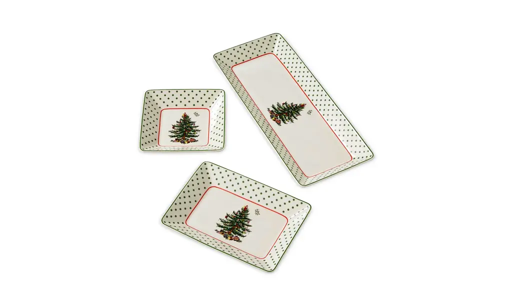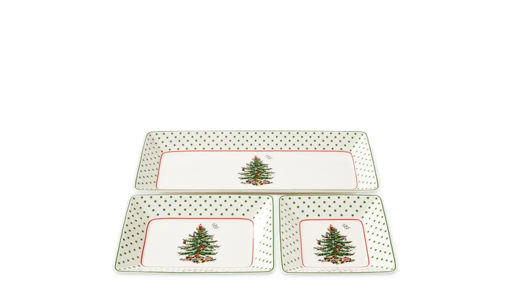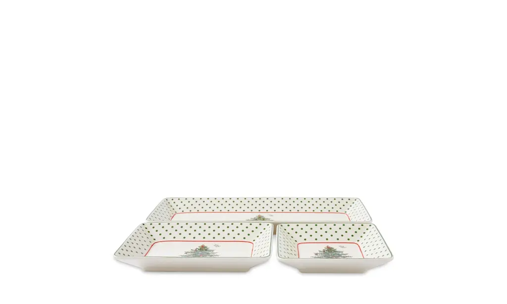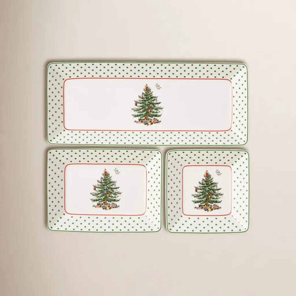 Christmas Tree Polka Dot 3-Piece Nesting Tray Set