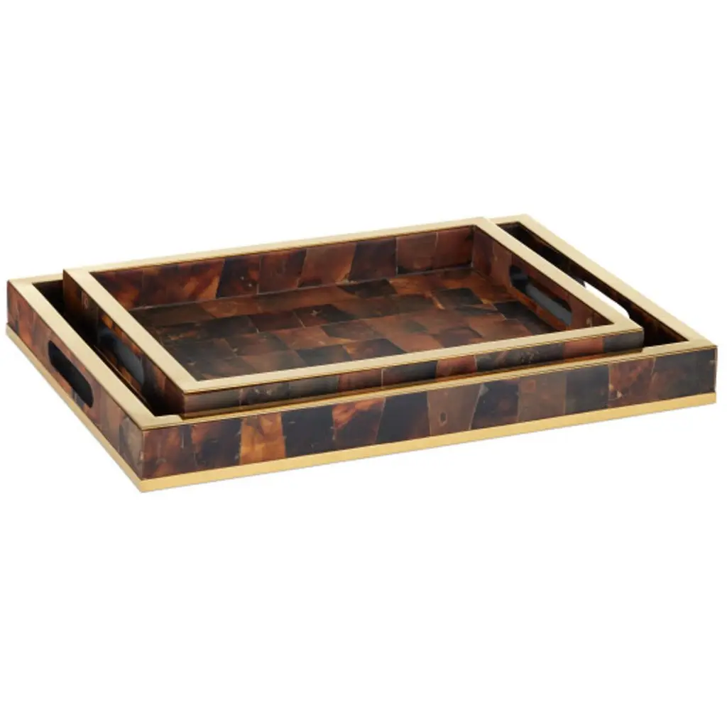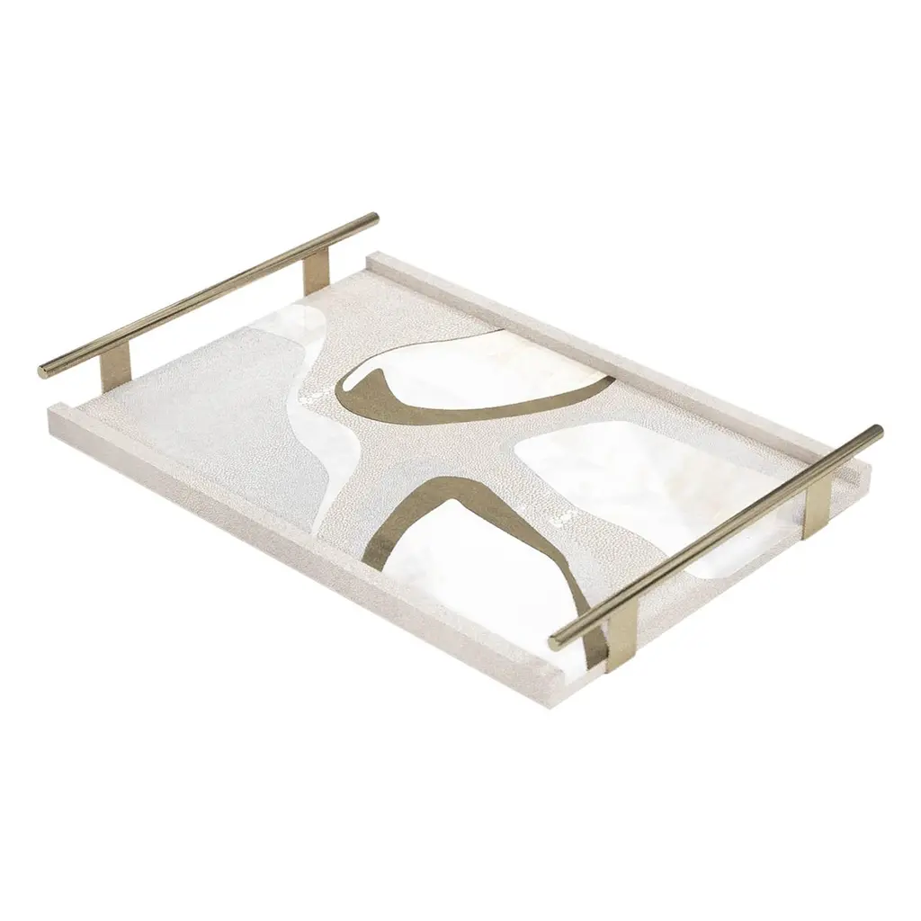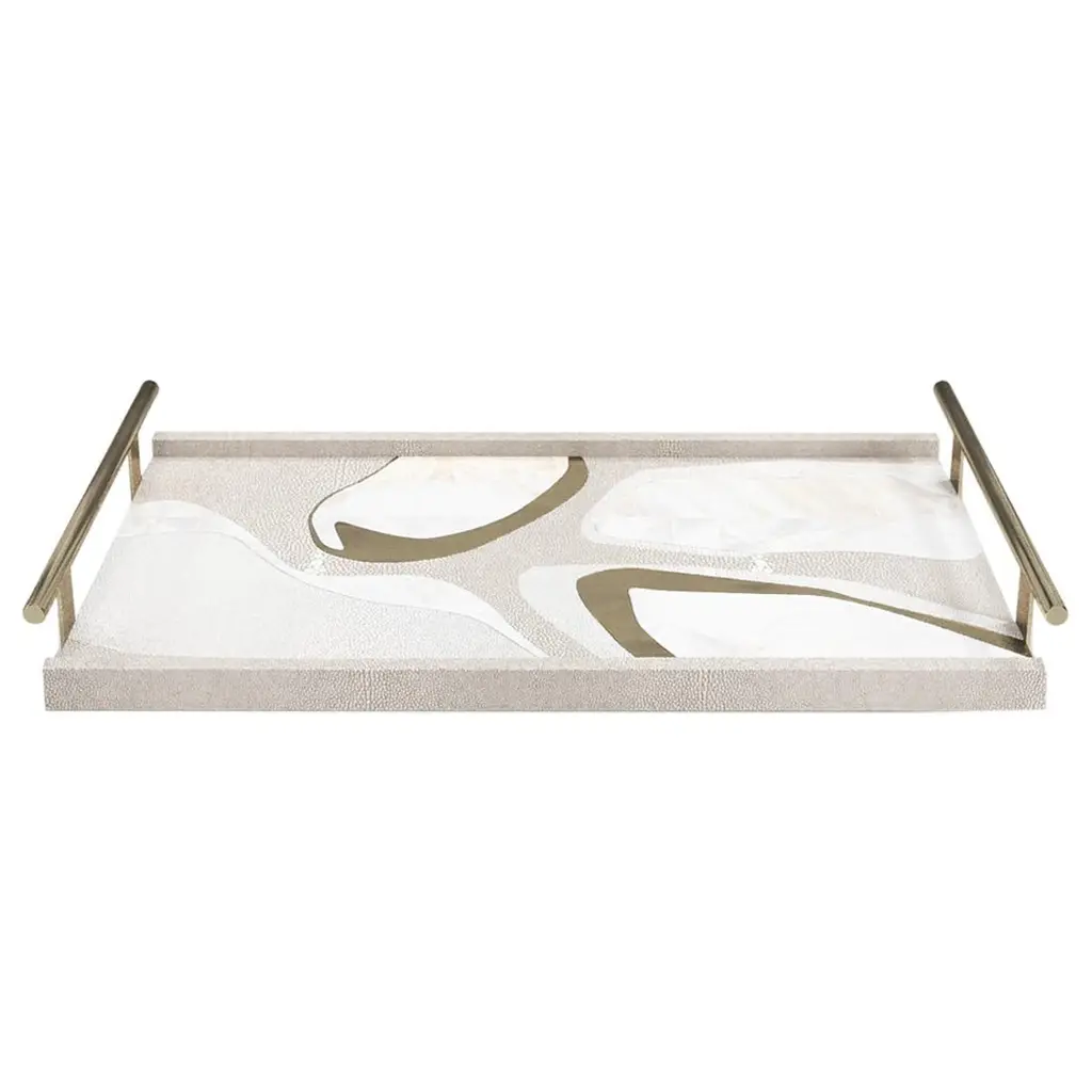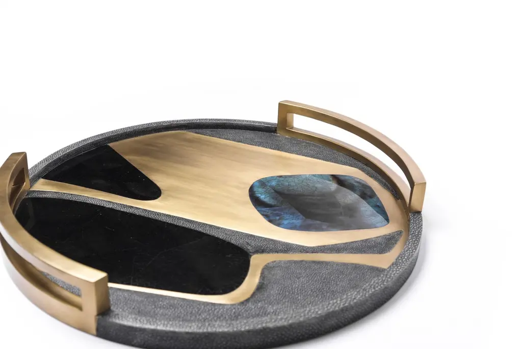 The Paris based label has distinguished themselves since their launch, with their iconic use of shagreen mixed with brass and other exotic materials. All furniture is handcrafted by skilled artisans, ultimately making each piece unique, designed in Paris and produced in the Philippines.The Cosmos Circular Tray is a stunning tabletop piece for any space. Available in light or dark color way inlaid in a mixture of shagreen, pen shell and bronze-patina brass.· 48.5 dia x 6.3 cm All R & Y Augousti pieces are handmade by artisans, ultimately making each piece unique.Wipe clean with soft dry cloth.Acclaimed design duo Ria & Yiouri Augousti have established themselves since the 1990s as pioneers of modern-vintage style through their luxurious Art Deco inspired collections.The Paris based label has distinguished themselves since their launch, with their iconic use of shagreen mixed with brass and other exotic materials. All furniture is handcrafted by skilled artisans, ultimately making each piece unique. All shagreen-covered items should be kept out of direct sunlight, color variants may occur on the stingray and other exotic finishes, but this showcases the Parisian label's commitment to creating authentic luxurious products using natural components.