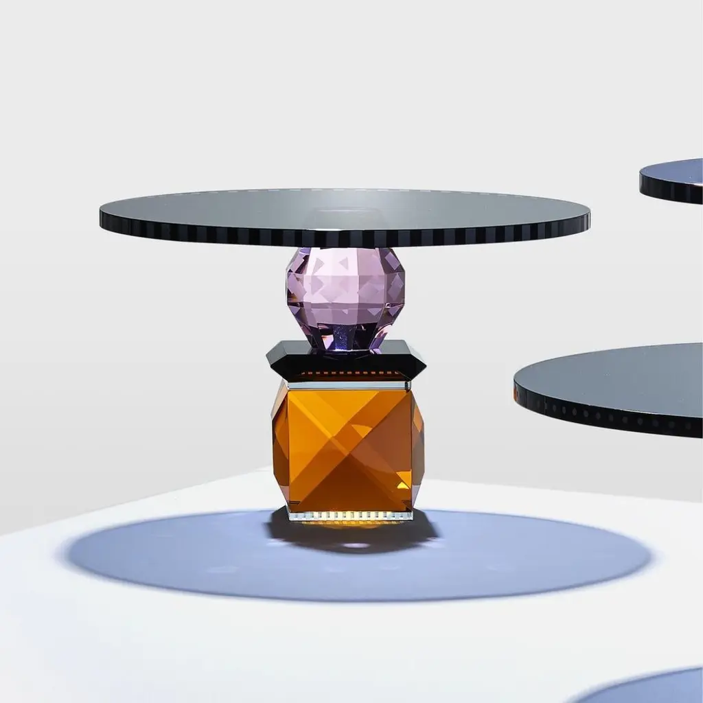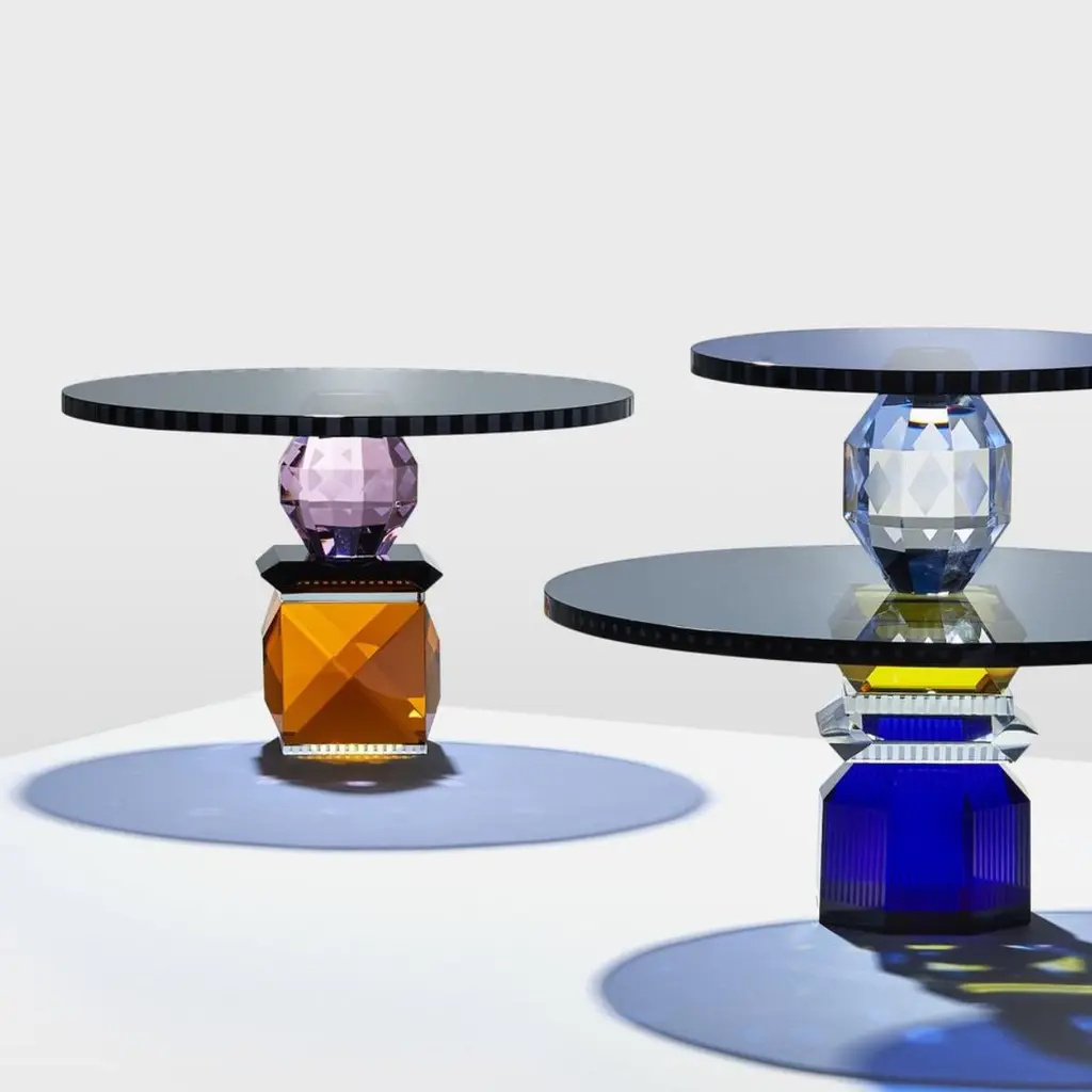 Circular crystal tray, SAV model, 21st century.Circular tray in coloured crystal. The thoughtful selection of materials, colours and shapes in a tray can harmonise with existing décor or introduce a fresh and captivating element, highlighting the thought behind each design choice. Estimated production time: 2 to 6 weeks.h: 18cm; w: 28cm; d: 28cm