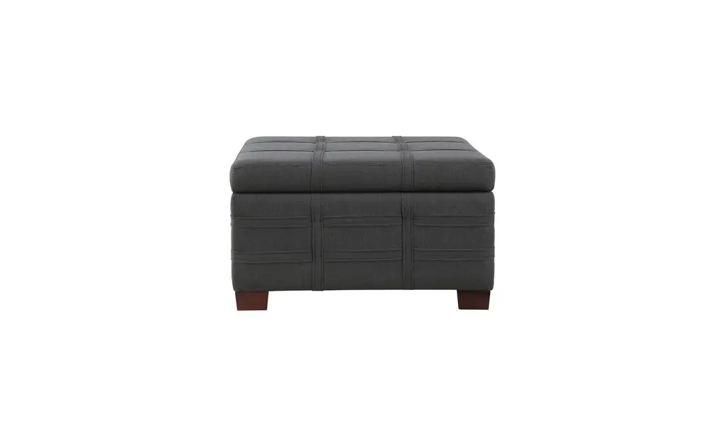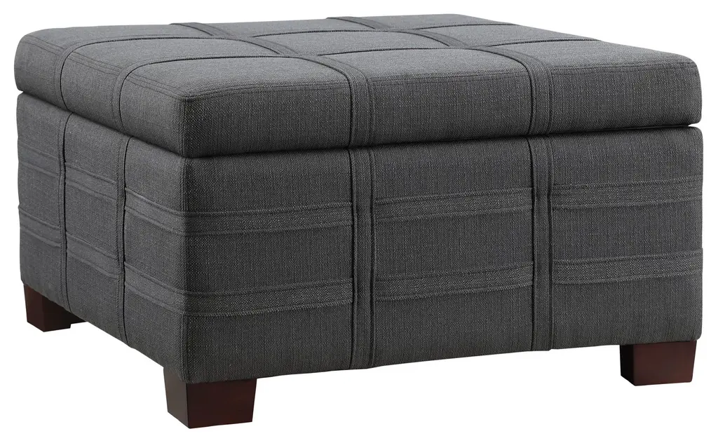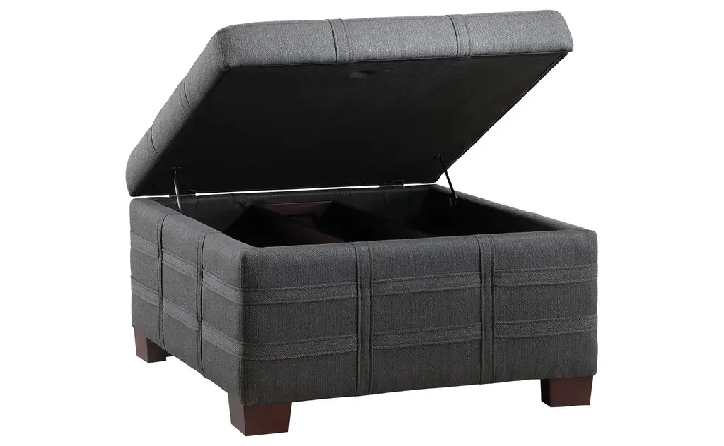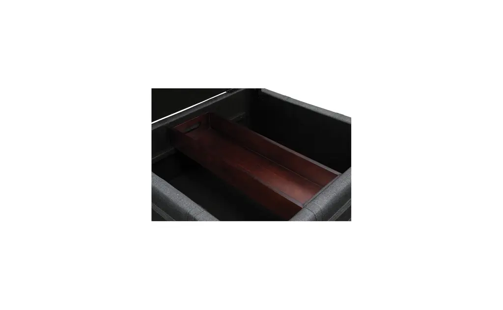 Classic Storage Ottoman With Lift-Up Lid, Sliding Tray & Padded Surface, Charcoal Fabric