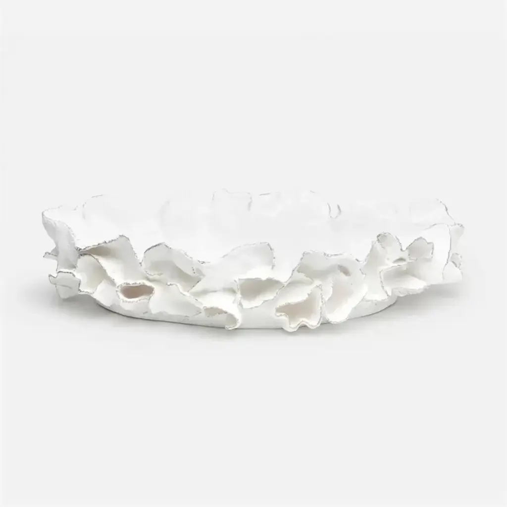 Artfully reproduced coral in the shape of a tray. Available with or without metallic trim.