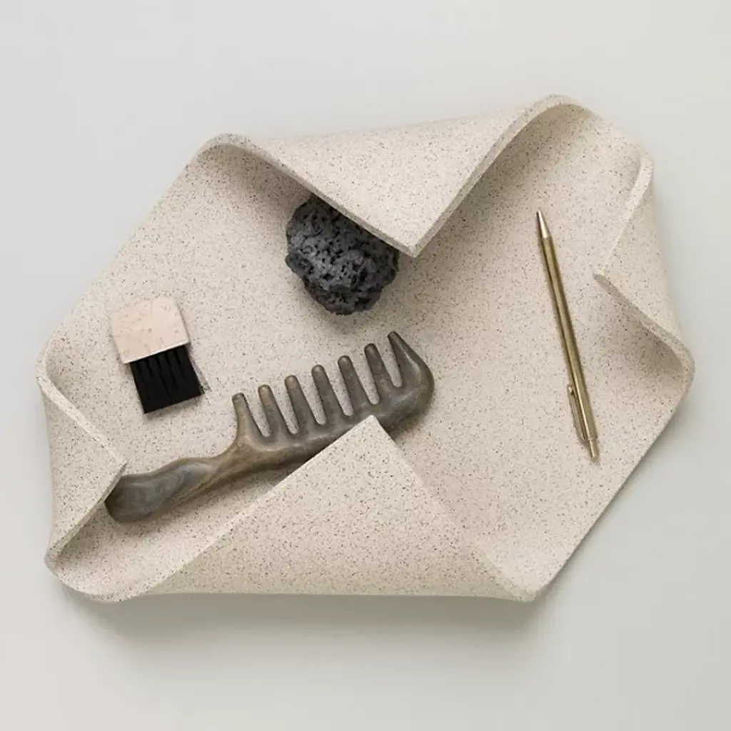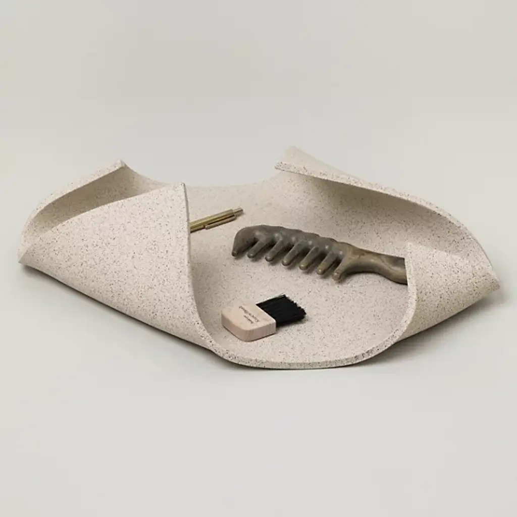 The Cocoon Tray from SIN brings an organic, sculptural feel to everyday objects with its gently curled corners and airy, inflated shape. Made in the USA from raw ceramic stoneware, its unglazed surface highlights the material’s natural texture. Whether used to catch keys or other smaller accessories, or serve as a quiet centerpiece, it joins a curved form and outstanding function with a calm, grounded presence.