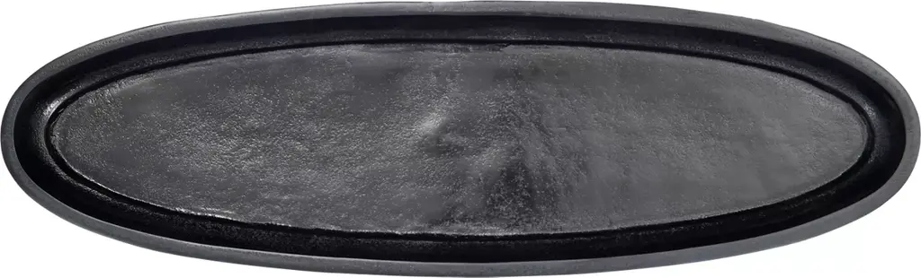 Our Colbert tray combines style and practicality, enhancing any space with its sleek black finish and elegant design. Handcrafted from aluminum, this versatile oval tray features a pedestal base that elevates your favorite items, whether for serving, as a centerpiece, or for organizing. Available in 22-inch and 26-inch widths, it's the perfect addition to any space.