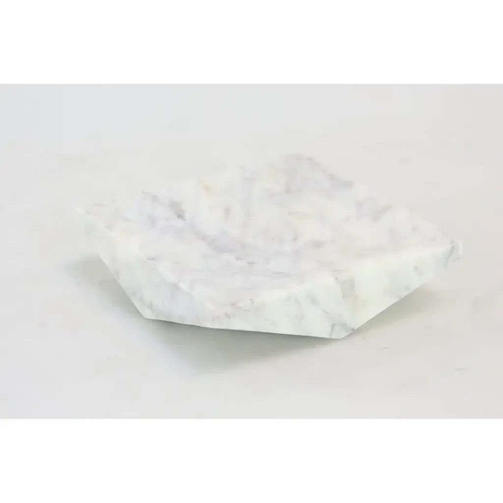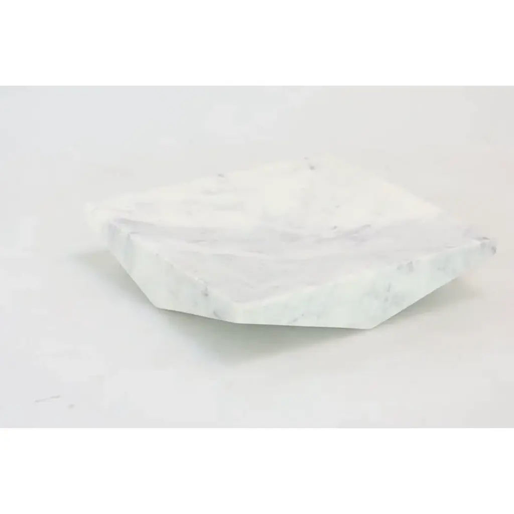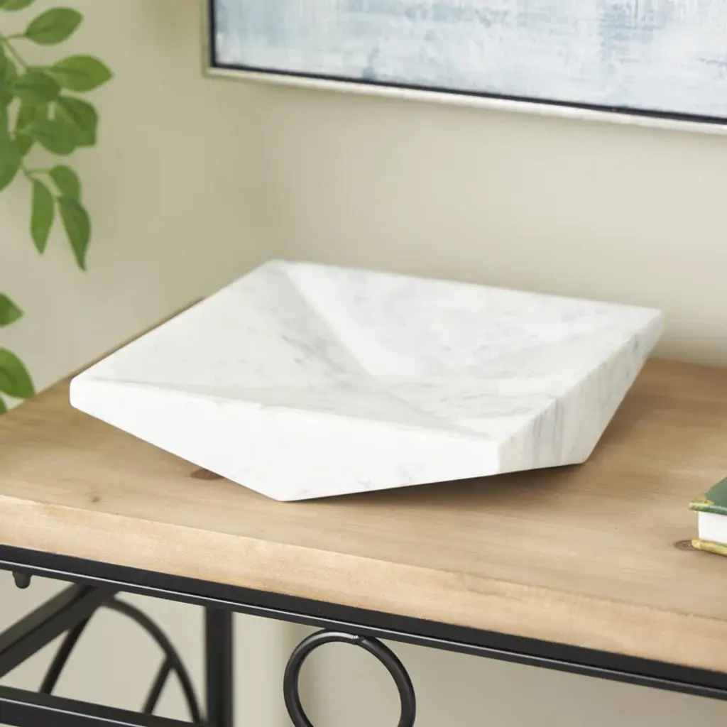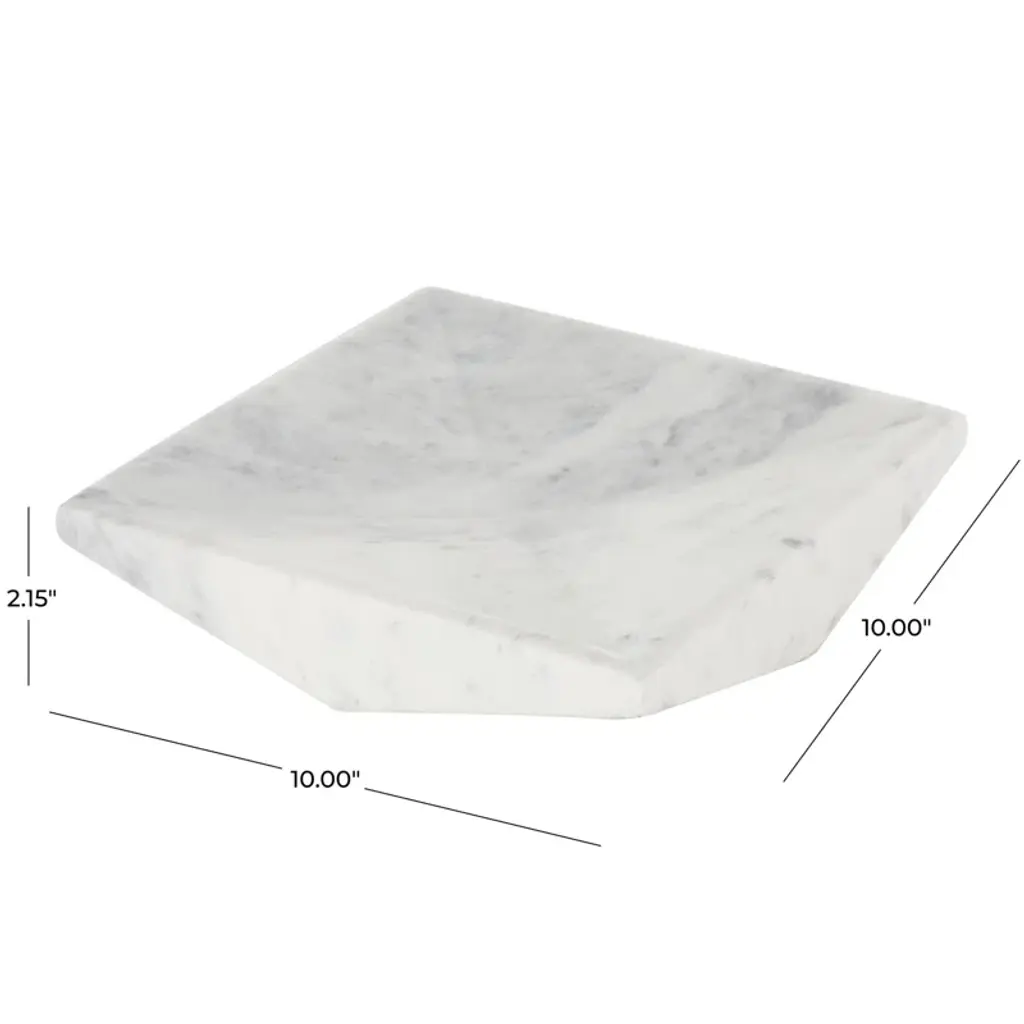 This geometric tray can be used as a stylish centerpiece for your coffee table. Designed with felt or rubber stoppers at the base that prevent scratching furniture and table tops, as well as sliding around. Please note that this item is for decorative purposes only and is not food-safe. Suitable for indoor use only. Marble is a product of nature and no two pieces are exactly alike. It is prone to variations in color and/or patterns in the material that add to the beauty and charm of the piece.. Made in India. This is a single white colored ottoman tray. Modern style.