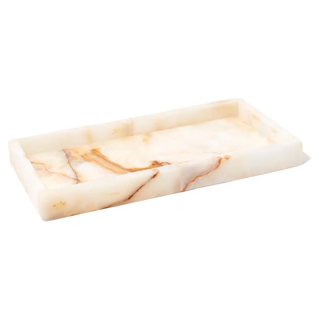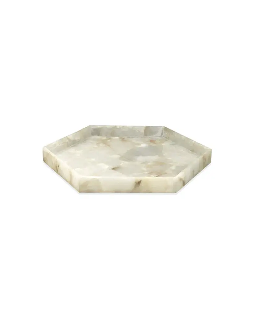 Introducing the Collector's Tray, a refined and luxurious accent piece for those with an eye for sophistication. This large natural white stone tray showcases the beauty of nature with its unique, marbled patterns and elegant, organic hues. The tray's substantial size and smooth, polished surface make it perfect for displaying your prized collections, serving guests, or as a decorative element in any room. Its gently curved edges lend a harmonious balance between form and function, offering both durability and style. Whether used as a centerpiece or a practical storage solution, the Collector's Tray embodies timeless elegance for the discerning collector.