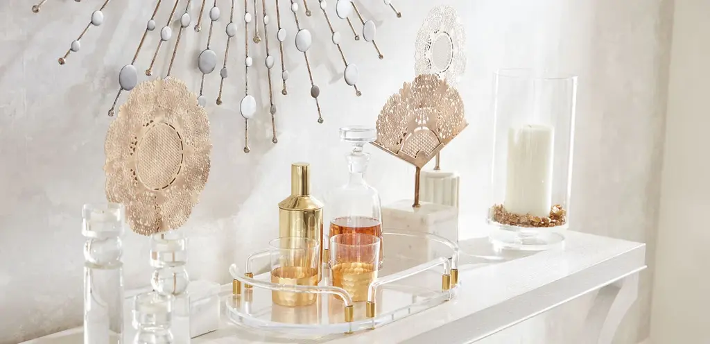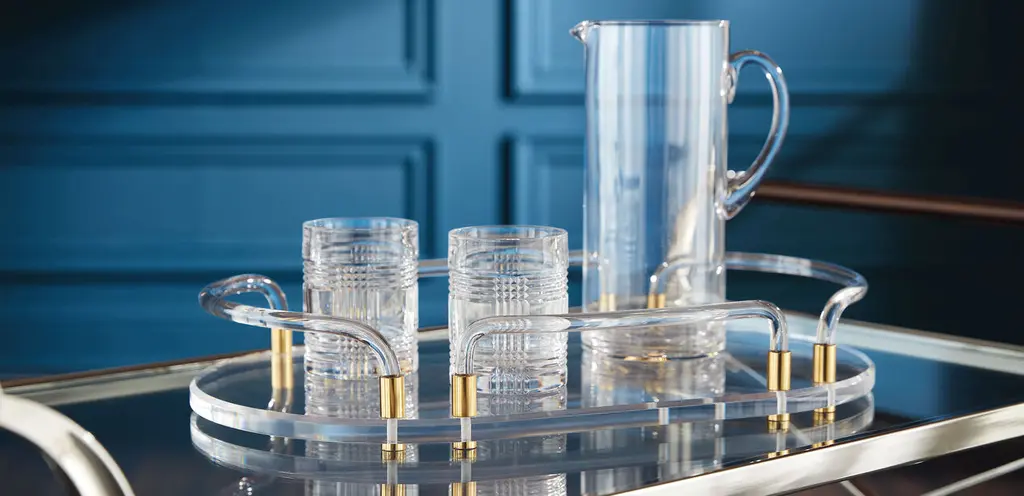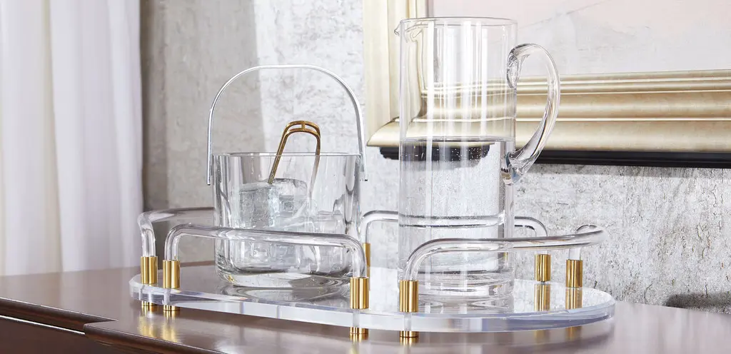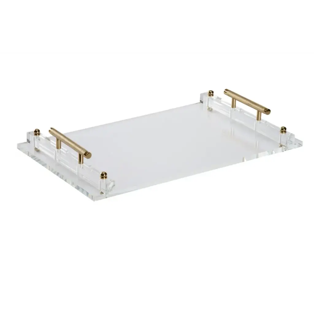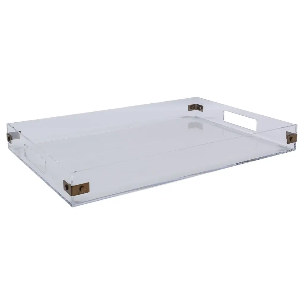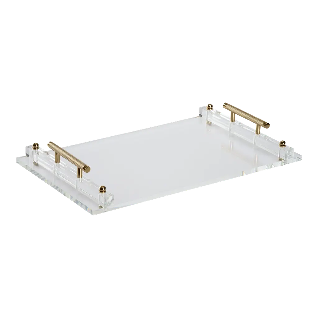 Our Collette decorative accent tray is made with care, from its curvy acrylic side rails (which are patiently bent by hand) to its carefully crafted brass fittings. The result is a shining décor tray stage for displaying pretty, collected pieces or turning personal items into miniature works of art.