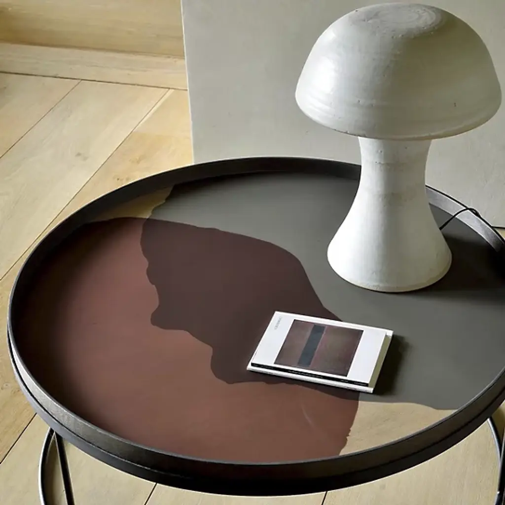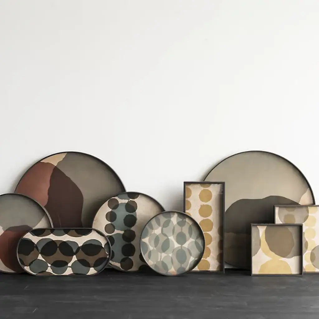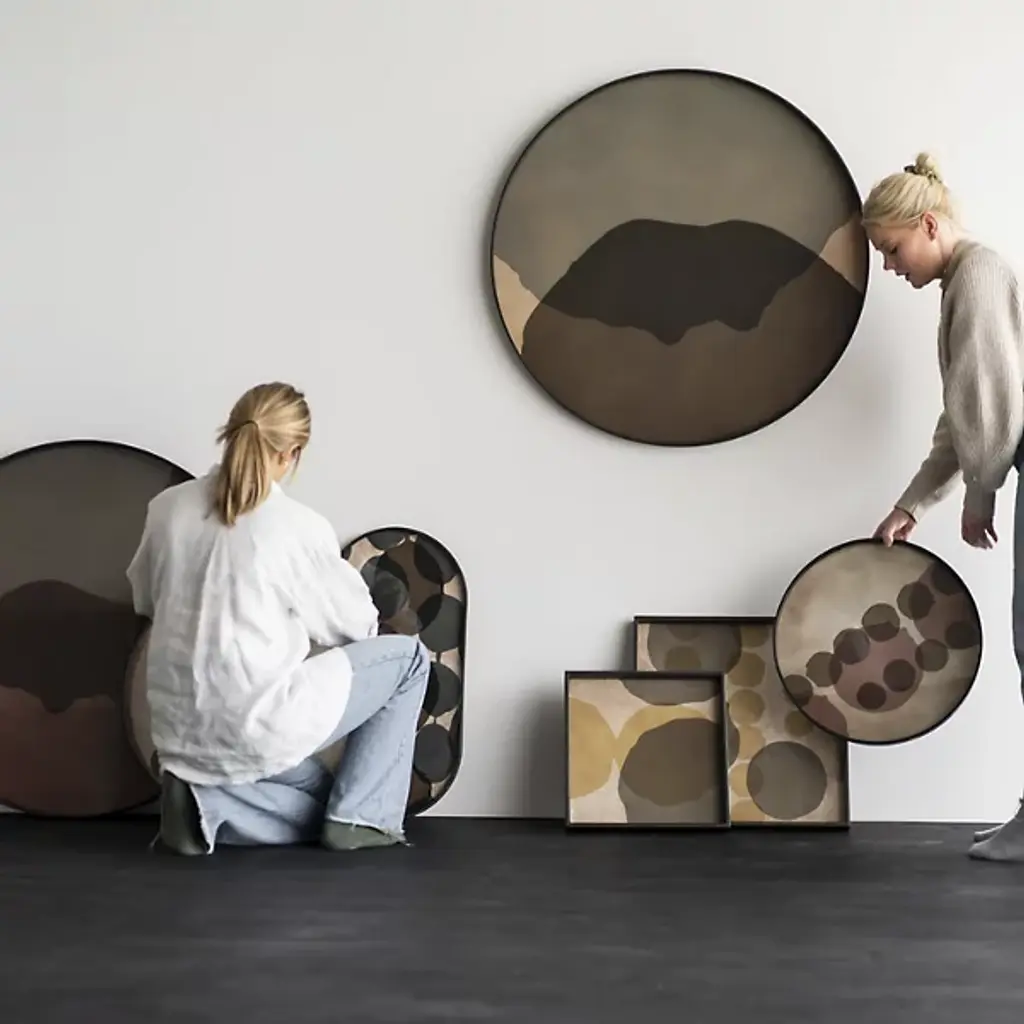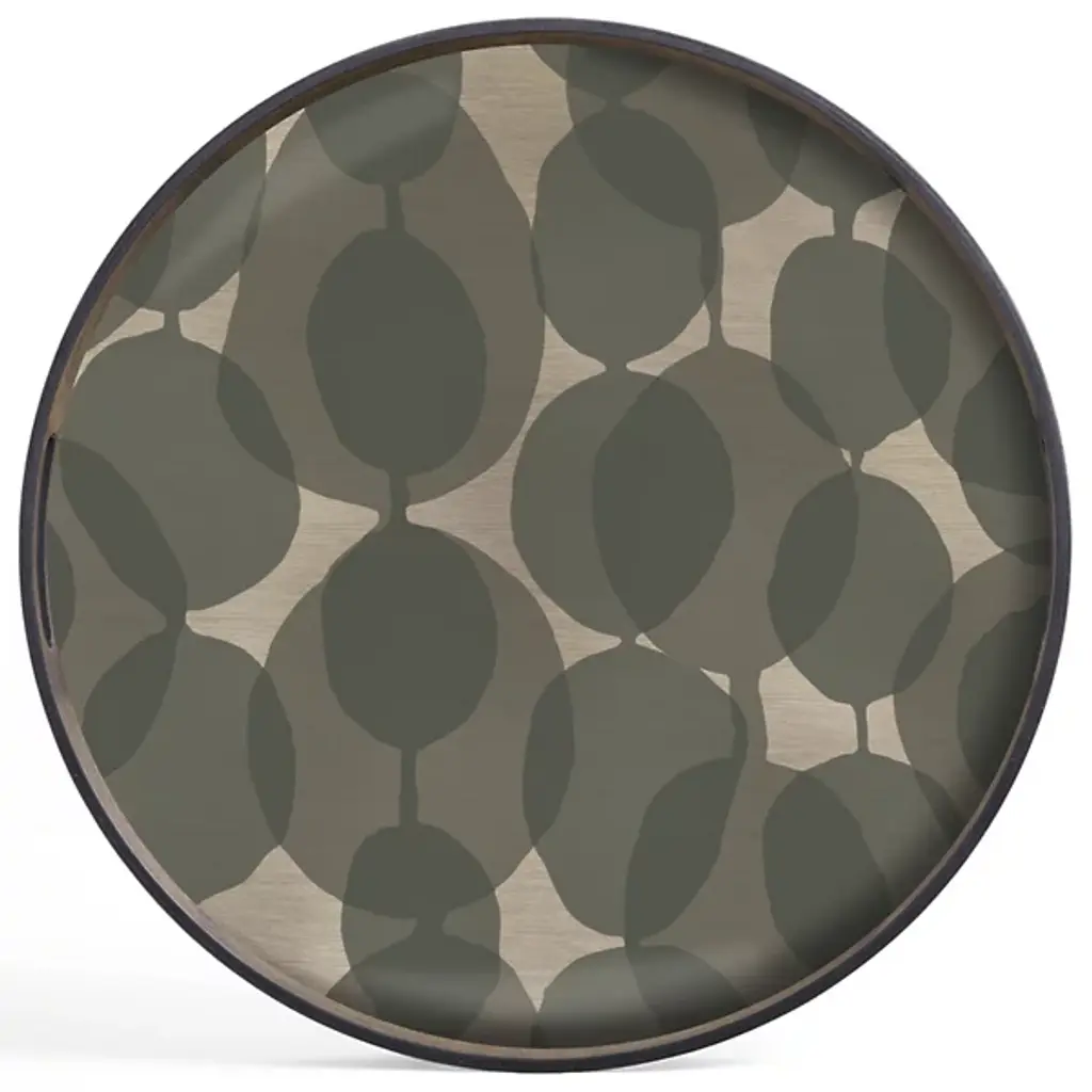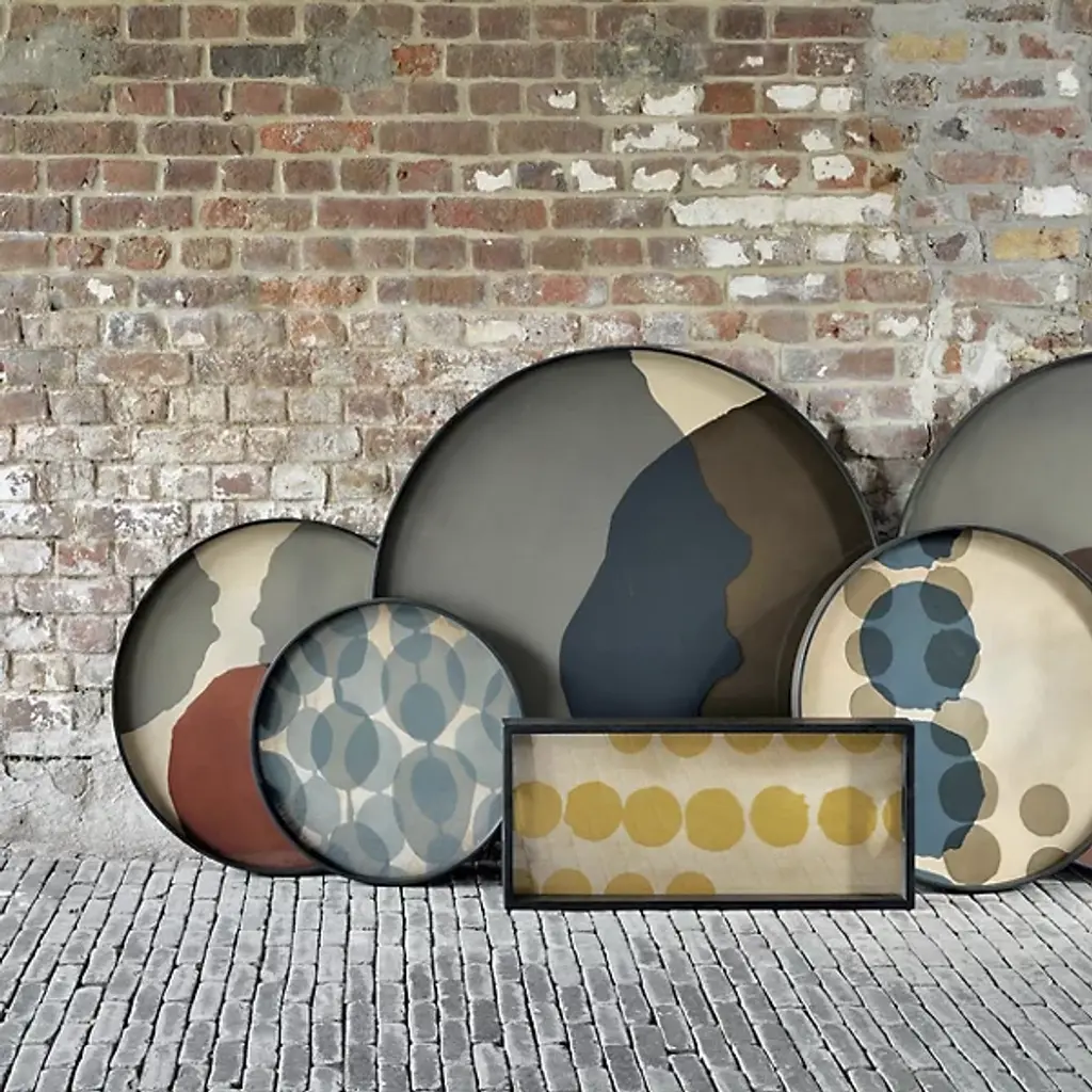 The Combined Dots Tray from Ethnicraft showcases intricately colliding dotted designs that bring elements of mystery and intrigue. Crafted in a round shape from fine glass, this contemporary tray effortlessly blends style and functionality, providing an easy means of organization. The tray’s round shape allows it to remain stable when placed upon counters and tables.