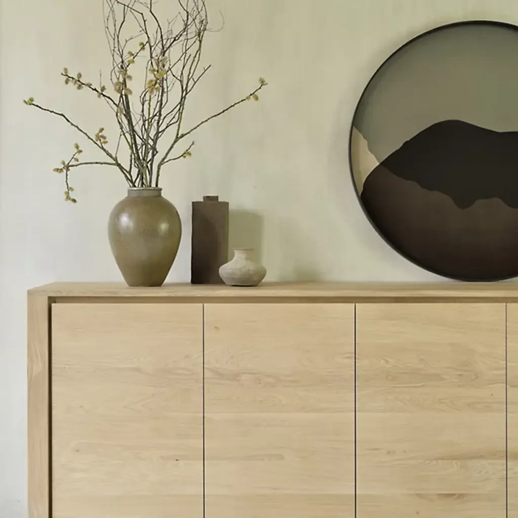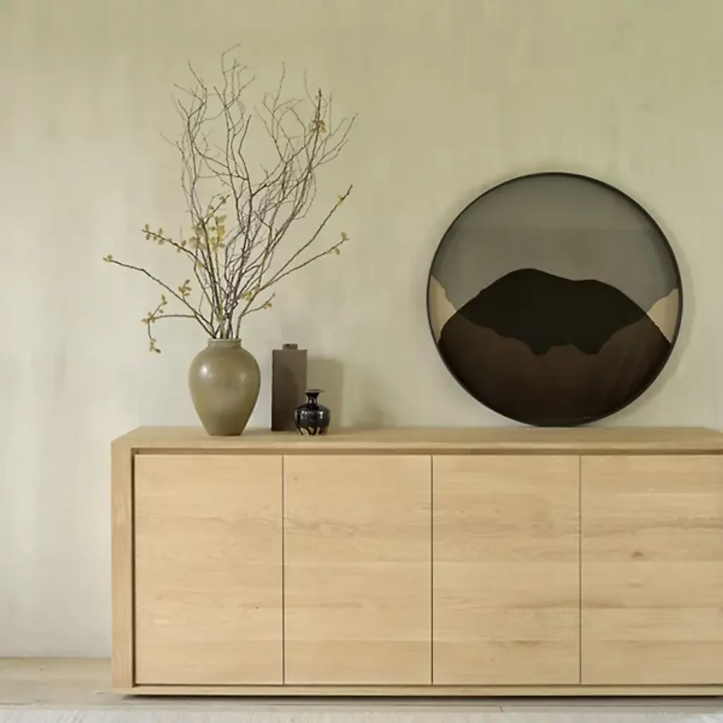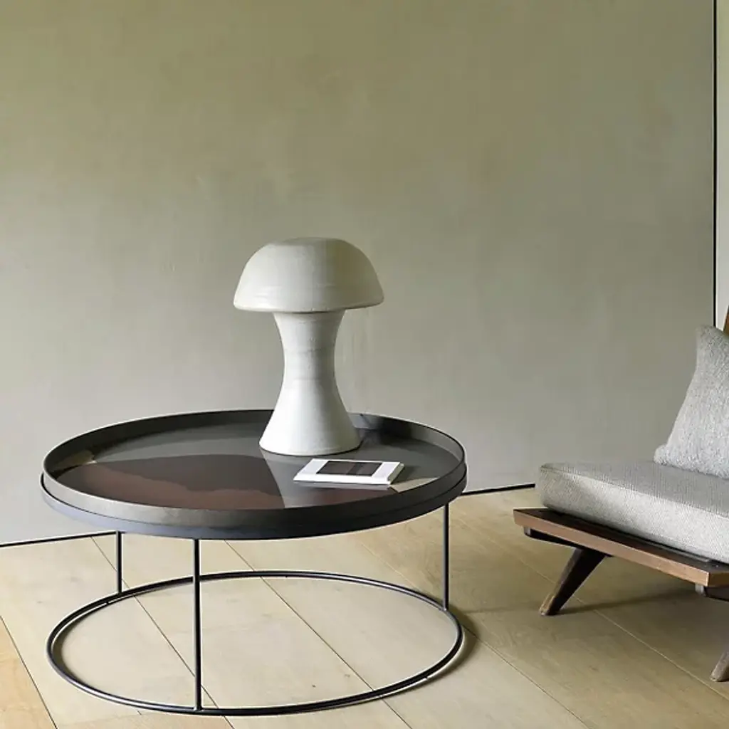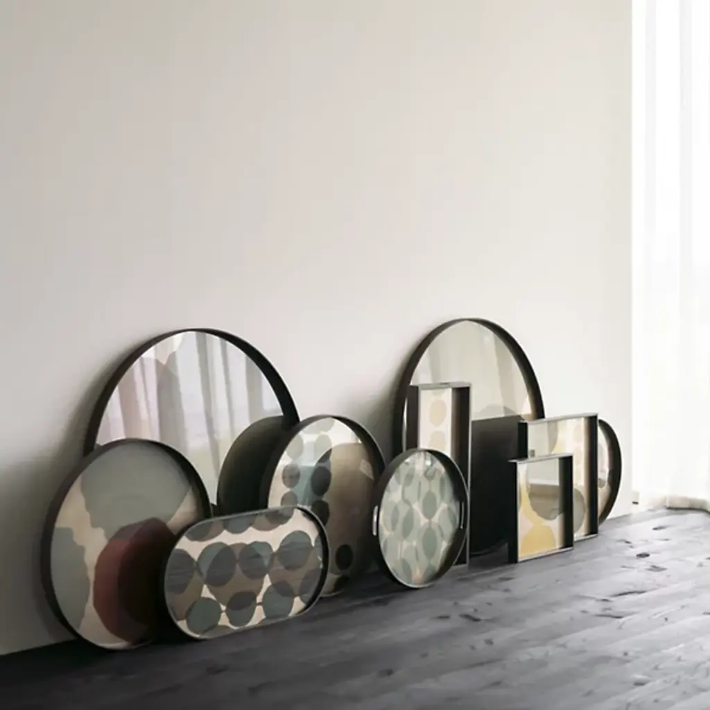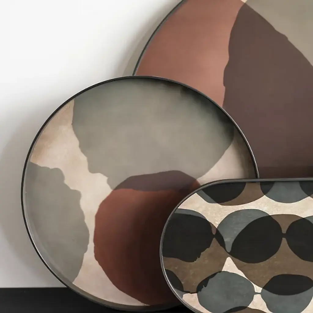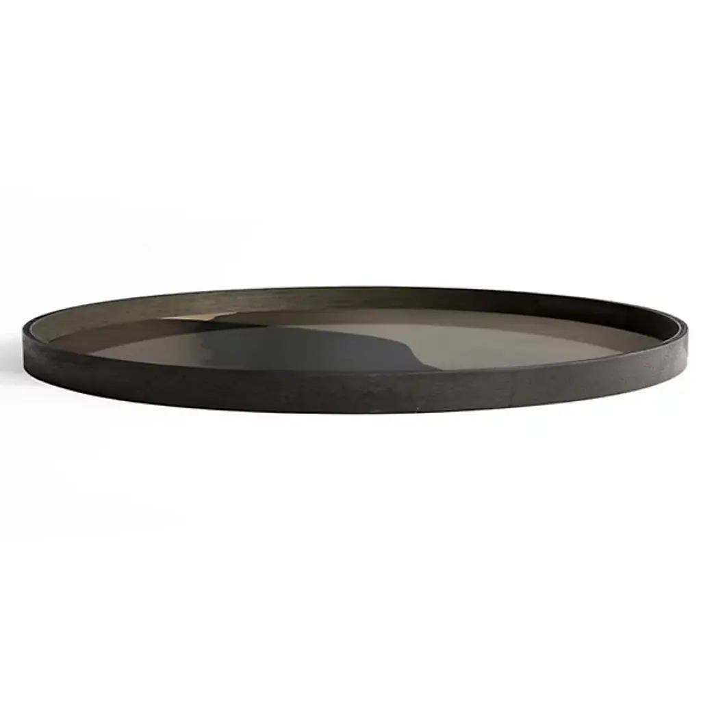 The Combined Dots Tray from Ethnicraft showcases intricately colliding dotted designs that bring elements of mystery and intrigue. Crafted in a round shape from fine glass, this contemporary tray effortlessly blends style and functionality, providing an easy means of organization. The tray’s round shape allows it to remain stable when placed upon counters and tables.