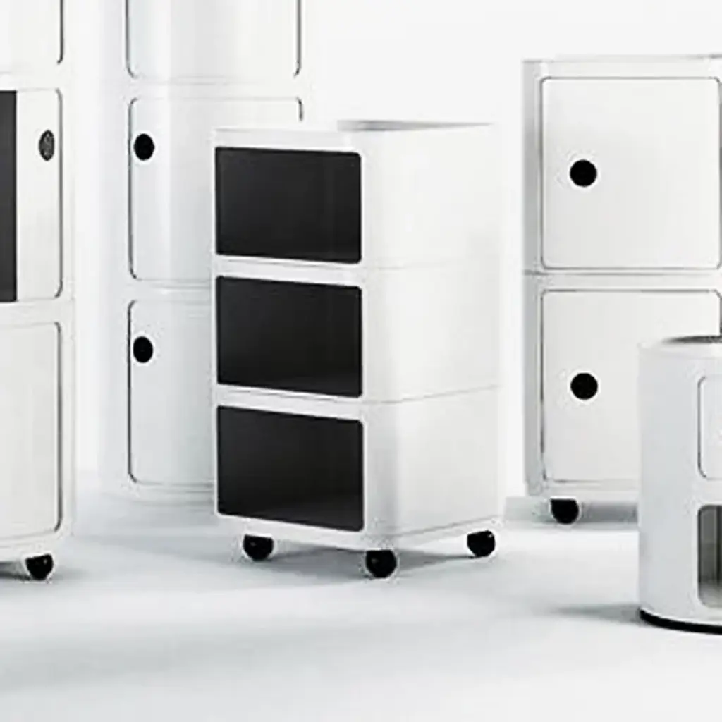 The Componibili Square Tray/Top from Kartell works with the line’s low square stacker with the top open. This product is made out of ABS, and it connects to the other Componibili element by a tongue-and-groove system. When combined these modular storage systems are functional and flexible and have been on display at the Museum of Modern Art in New York for thirty years.