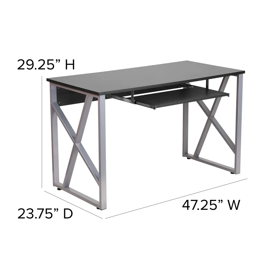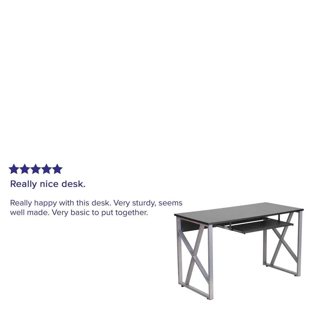 Computer Desk With Pull-Out Keyboard Tray And Cross-Brace Frame