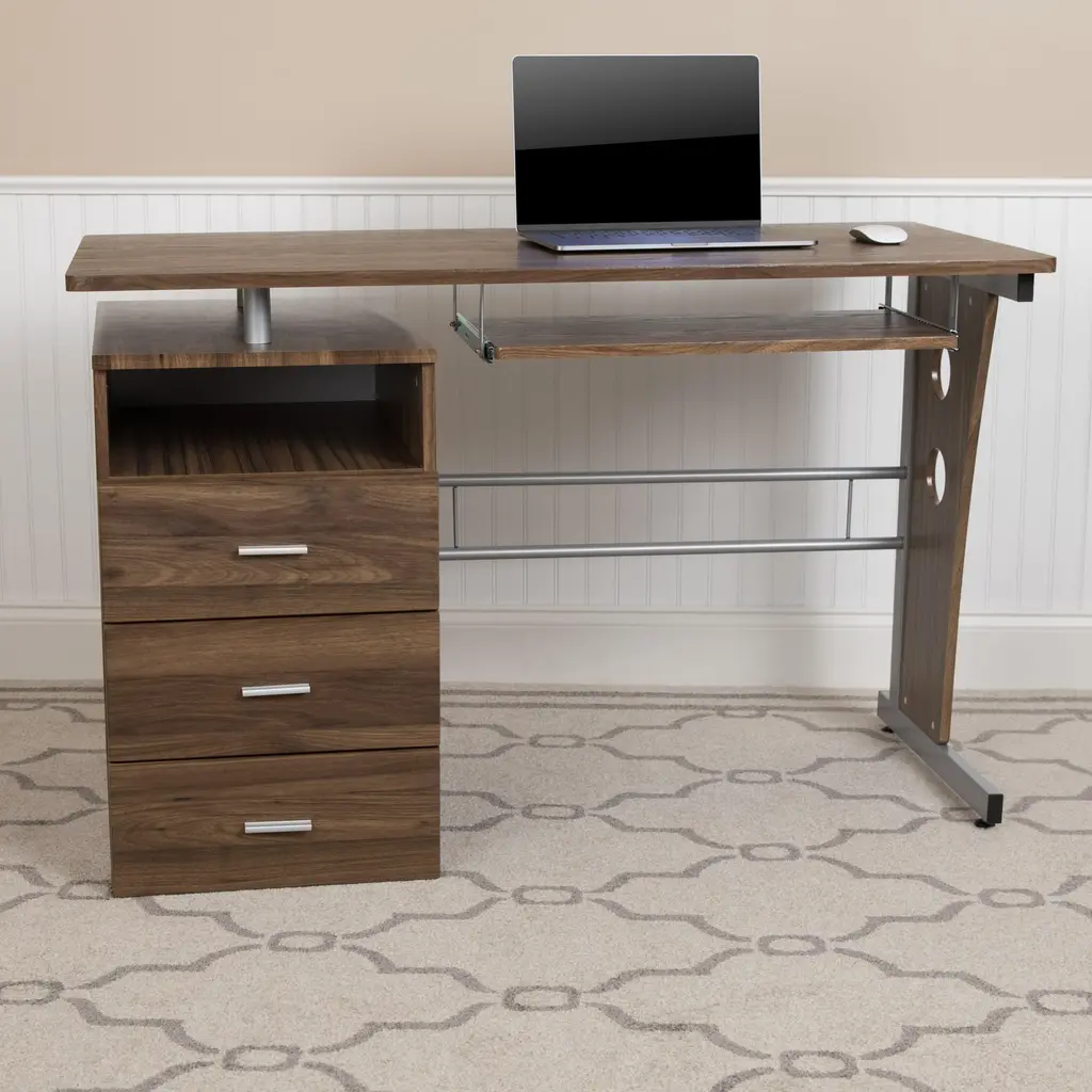 Computer Desk With Three Drawer Single Pedestal And Pull-Out Keyboard Tray