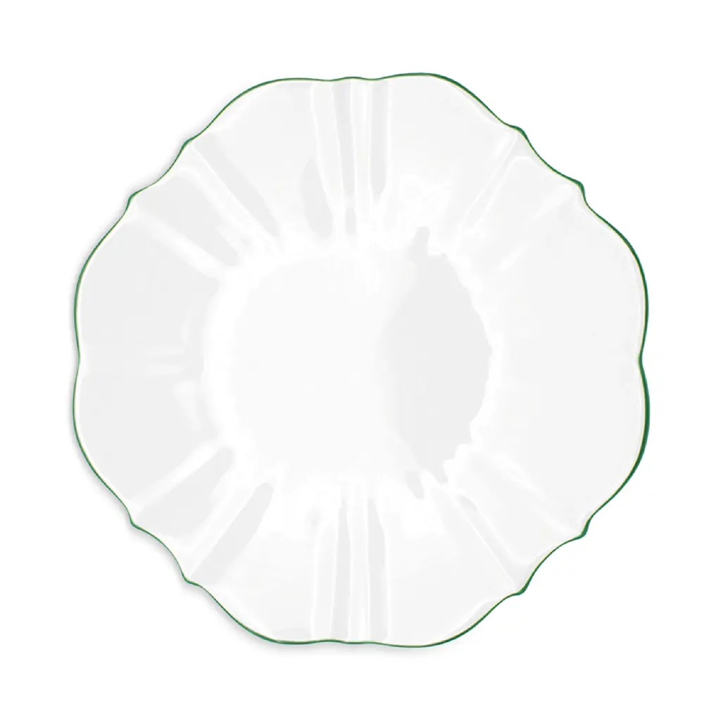 The Conchiglia Tray, 6" Diameter, is created from Italian glass that is hand decorated in sage green and finished with a layer of pure silver applied to the outer surface of the glass that gives a luxury touch to your table and home. Exceptional Value with Elegant Style made in Italy. Professional packing for each item shipped from our U. S warehouse. As each piece is handcrafted no two pieces are exactly alike and slight variations in color and size may occur.Conchiglia Tray Sage Green Silver 6"� Dia.Made in ItalyExceptional Value and Elegant StyleAs each piece is handcrafted no two pieces are exactly alike and slight variations in color and size may occur.