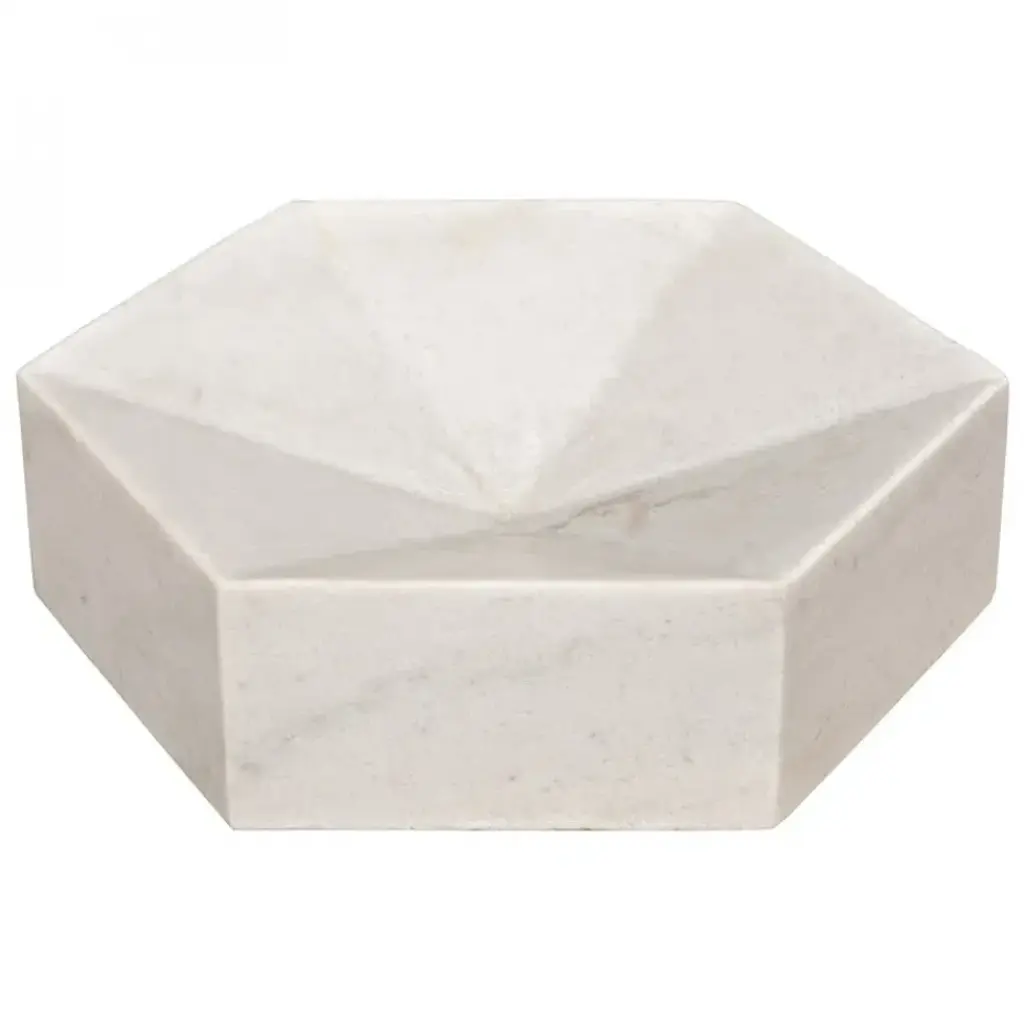 The Conda lends an elegant texture with its beautiful white stone design and geometric concave form. Its size is ideal for styling as a catchall in an entryway or mudroom.
