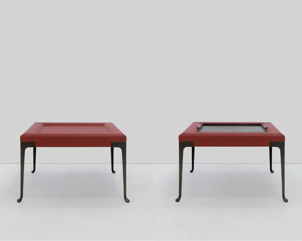 Constantine Leather Ottoman With Tray, Bronze Age Collection By Mark Zeff