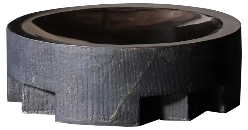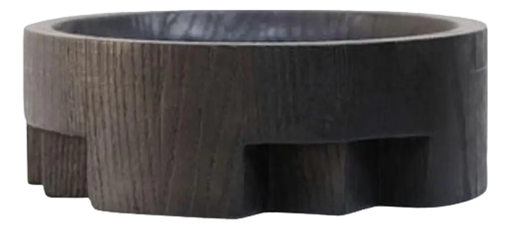 Bronze disk tray - signed Arno Declercq.Sand casted in pink bronze and hand polished.Measures: 27 cm wide x 27 cm long x 9 cm high / 10.6” wide x 10.6” long x 3.5” highSigned by Arno Declercq.Arno DeclercqBelgian designer and art dealer who makes bespoke objects with passion for design, atmosphere, history and craft. Arno grew up in a family with parents who like to work with beautiful brands and objects.His father studied at the Royal Academy of Arts Fashion Department, he worked for Bikkembergs and made his own fashion brands, but has also collected tribal arts for more than 20 years. His mother, who worked with his father from the beginning, bought a shoe store in 2010 where they sold brands as Rick Owens, Ann Demeulemeester, Maison Martin Margiela, ... With the interest in beauty he learned from his parents, Arno studied interior design, after learning a lot about materials and with great knowledge of history he designed interiors and opened his own gallery for ethnographic art and design.The collection has come to the idea that there are too few interiors where they no longer have the big and static vases and candlesticks that the people had in big houses over 100 years ago. By focusing on architecture, ancient arts and design, after war buildings, defence buildings (bunkers and fortresses) and tribal arts, he created a collection that became a Classic. Each piece is unique because it is entirely handcrafted by him. Made of tropical hardwood called Iroko this he discovered after one of his many trips to West Africa interested in voodoo arts.In these strange tribal arts, the wood "Iroko" is used in many objects, according to their culture, the ancestors lives in these trees, and they also call this tree "the king of the forest".Arno also combines this with Belgian oak, that dried for more than 30 years, wood that was provided for the many furniture makers in Mechelen.By treating these objects through the Yakusugi technique or another mentioned "Shou Sugi Ban" an ancient Japanese technique where the objects are burned to protect the wood from weathering and subsequently fixed to get a patina look as long as possible. This gives each object a unique texture.