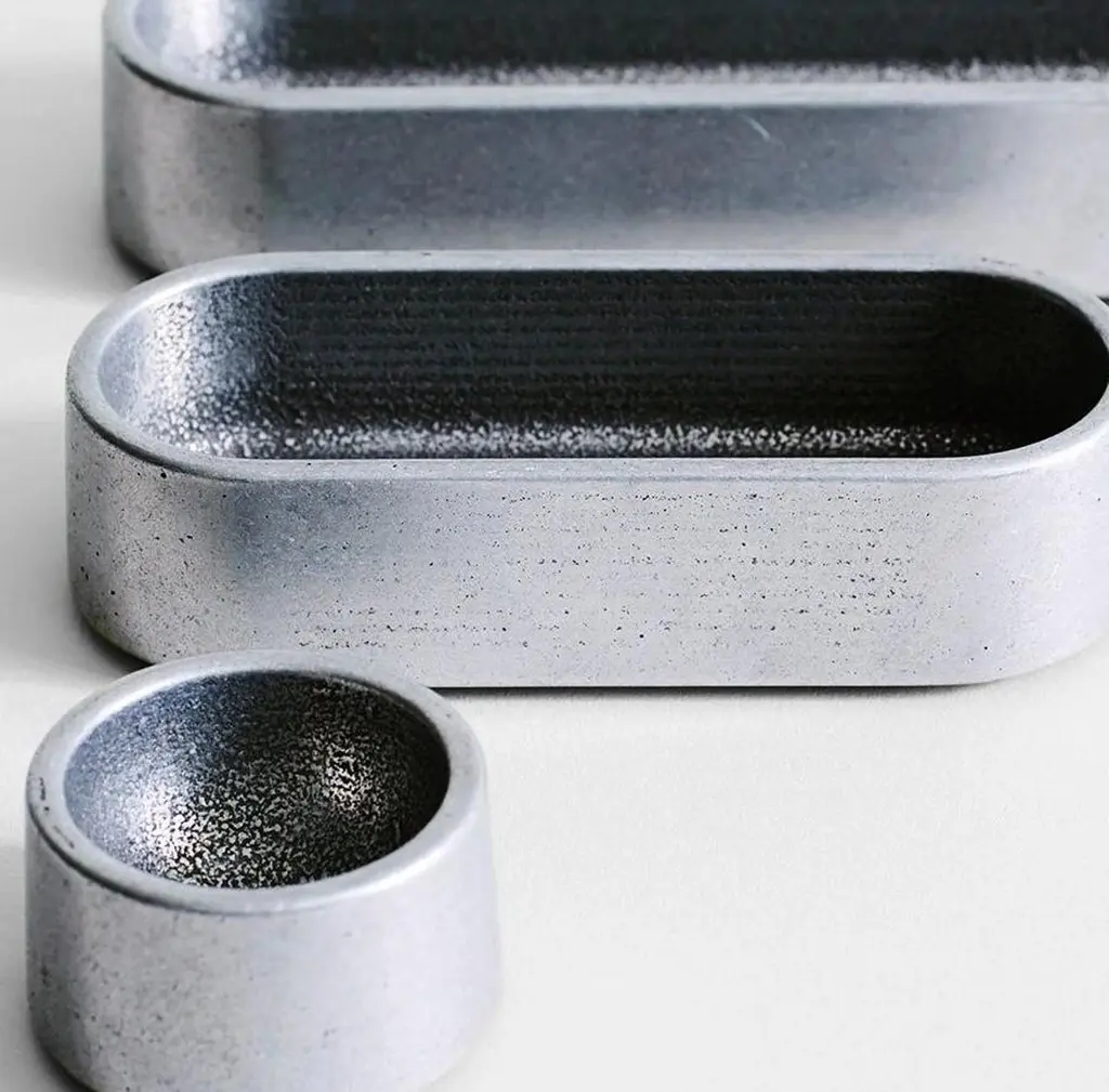 Contemporary Three Stacked, Oblong Silver Aluminium Stack Trays By Henry Wilson