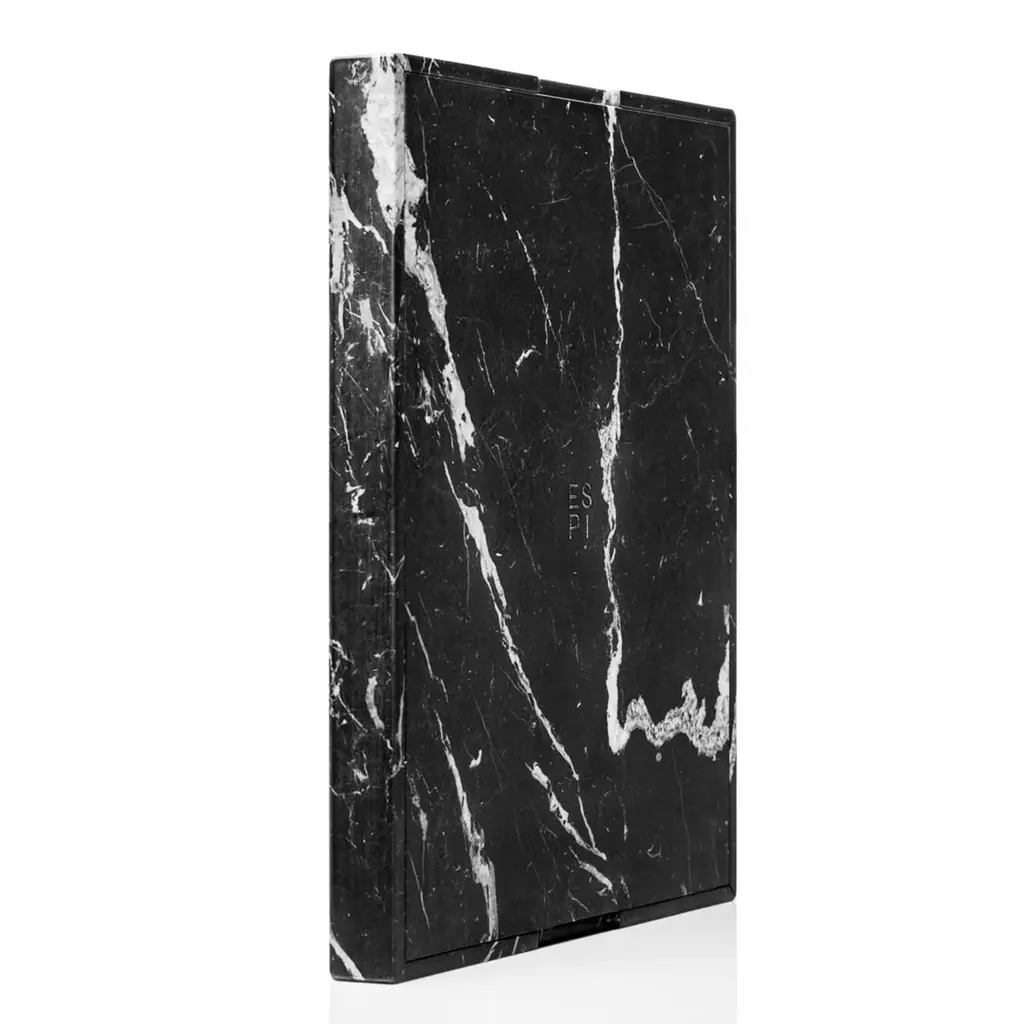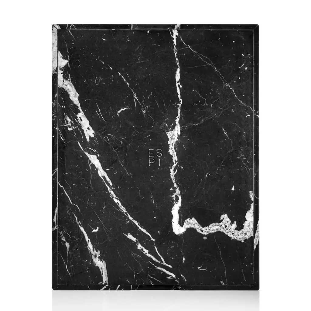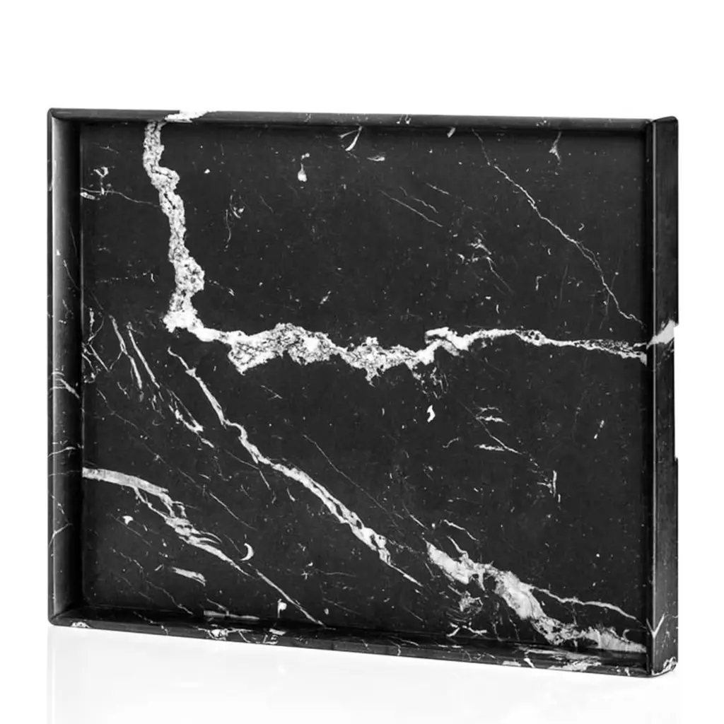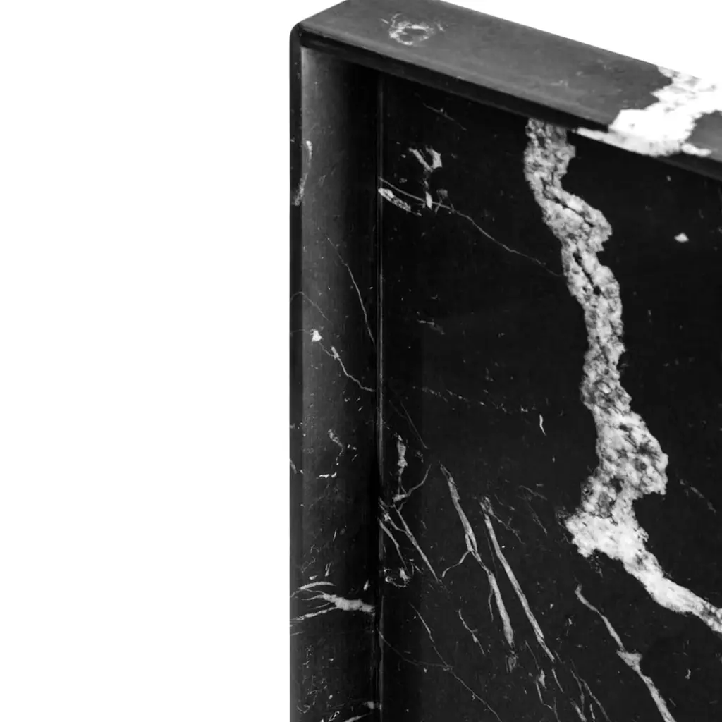An extraordinary piece of subtle sophistication, this serving tray is exquisitely crafted by expert hands using precious Marquina marble. Showcasing natural white veins over the deep black background color, its simple rectangular silhouette features raised edges that make it easier to carry. The piece is finished with a practical and easy to clean opaque effect. Ideally matched with the Convivio Maxi Trivet, this tray can be customized among a wide range of available marbles, and with monograms, please ask the Concierge for details.