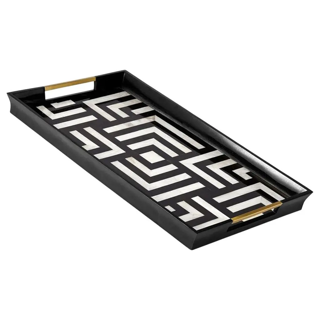 A GENEROUS SERVING TRAY FOR THE GRACIOUS HOST, IN SOPHISTICATED BLACK WITH METALLIC SATIN GOLD INTERLOCKING HONEYCOMB PATTERN AND GOLD PINSTRIPE DETAIL. AVAILABLE IN OTHER COLORS (SEARCH:COPAS) DESIGNED BY SHAYLA COPAS.