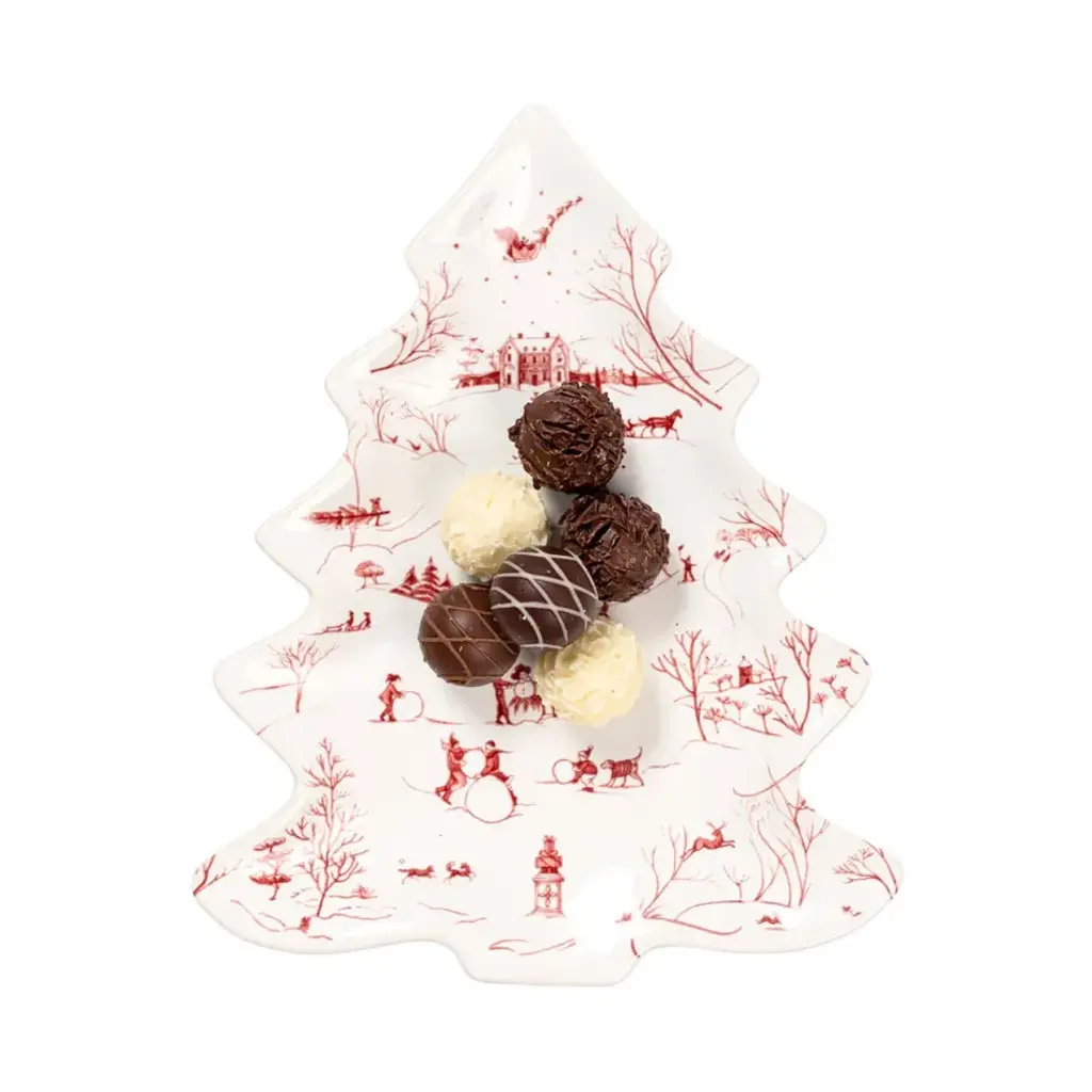Beautifully illustrated with scenes of beloved winter activities such as ice skating, snowman building, and more, this gorgeous little tree tray makes you smile from ear to ear with childish delight. This lovely serving piece is perfect for cheeses or sweet treats and makes a lovely hostess gift! Based in Connecticut, Juliska is committed to bringing elegant European design into our modern homes. Since its founding in 2001, when David and Capucine Gooding began by working with artisans outside of Prague to reproduce antique Bohemian glass pieces, every piece from Juliska has shared a rich heritage spanning six centuries of European design. Juliska's creations are timeless, romantic and effortlessly chic.