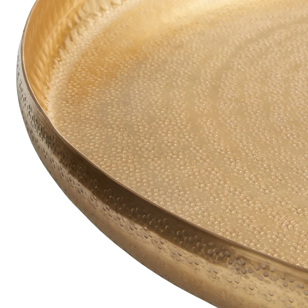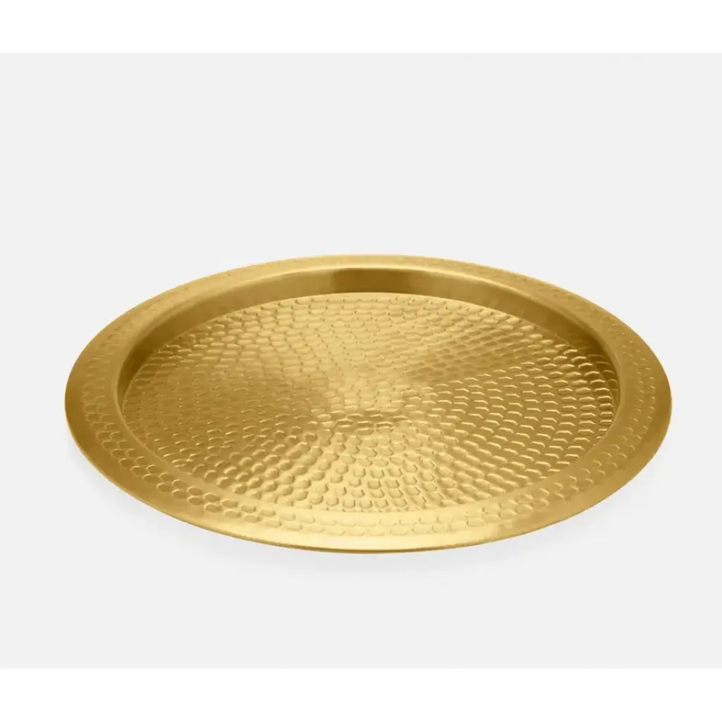 Make a dazzling decor statement with our large gold metal tray, hand-hammered using traditional techniques by artisans in India. A gorgeous base for your candlescape or a pretty place to corral stray clutter, it adds polish and artistic appeal to your coffee table or ottoman. Handcrafted in global artisan communities and available in limited quantities, our one-of-a-kind CRAFT pieces bring heirloom-quality style to your home.