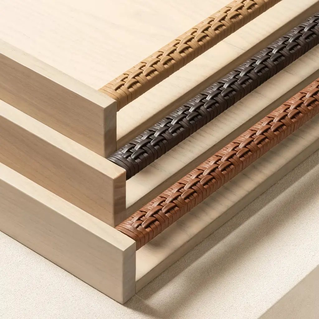 Discover the elegant Ashwood Structure. Each piece is adorned with handwoven fine leather handles in a sophisticated Cappuccino color. Elevate your interior with this blend of timeless design and luxurious craftsmanship. Available in two refined finishes: Ashwood and Walnut.