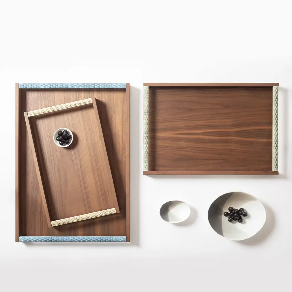 Introducing the Walnut Wood Structure. The piece features handwoven fine leather handles in a luxurious Ivory color. Enhance your space with the perfect blend of timeless design and superior craftsmanship. Available in two exquisite finishes: Ashwood and Walnut.