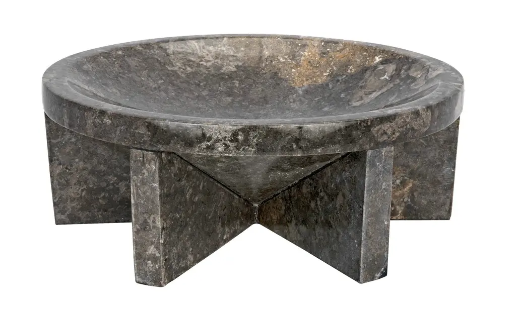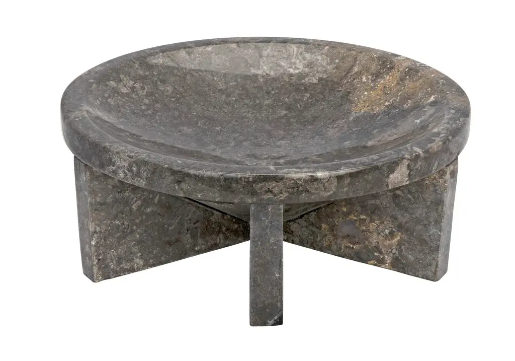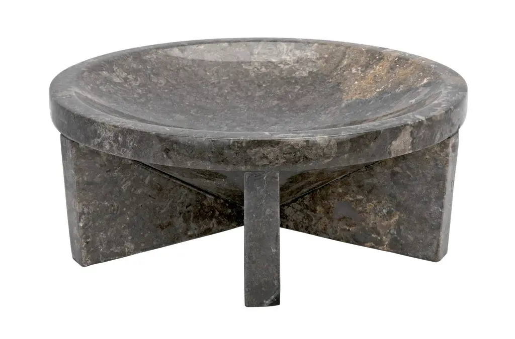 Generously sized at well over a foot in diameter, this dramatic natural black marble tray is the perfect catch-all for any space. Expertly artisan crafted of solid stone and designed with simple lines, the natural material takes center stage. The marble we work with was chosen for the beauty of its natural striations and veining. No two pieces of marble are the same, and each of our marble objects will therefore be unique to themselves.