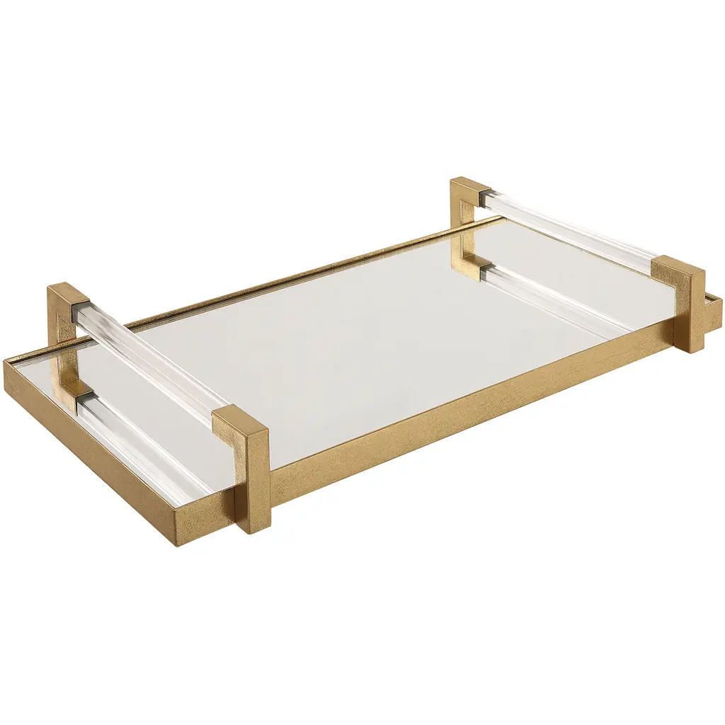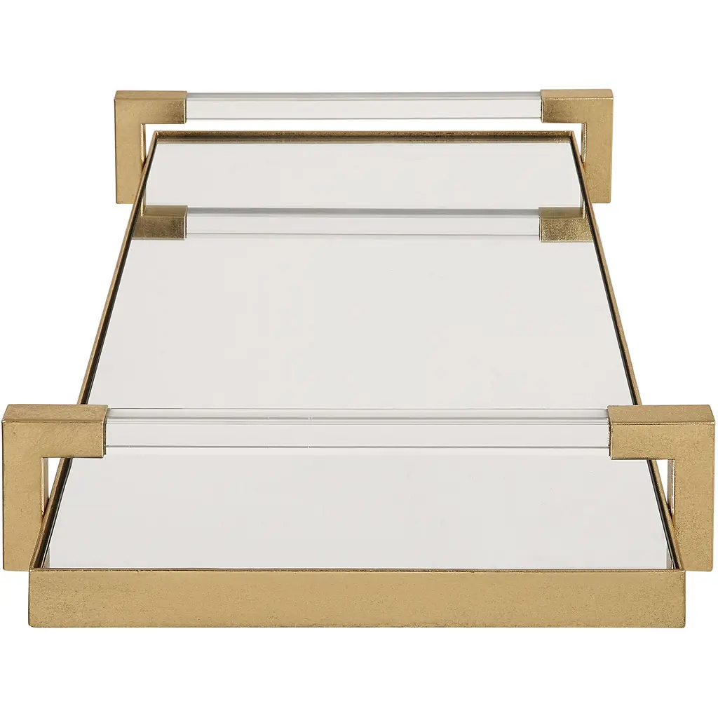 Deki Antiqued Gold Leaf And Clear Acrylic Mirrored Tray