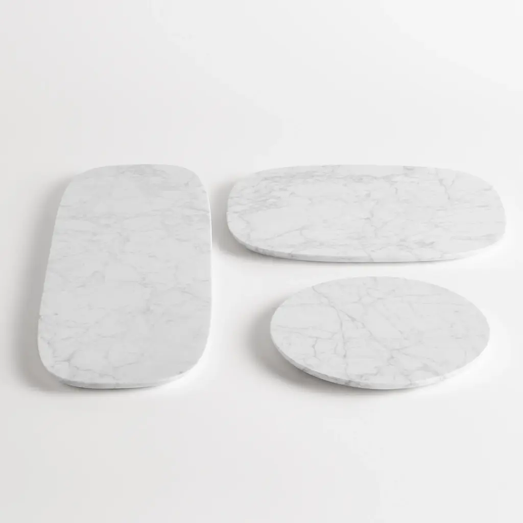 Soft shapes become hard to resist in these versatile trays. Available in three organic forms (small, medium and large) and three exquisite marbles to enable your inner tablescape artist and delight your guests.