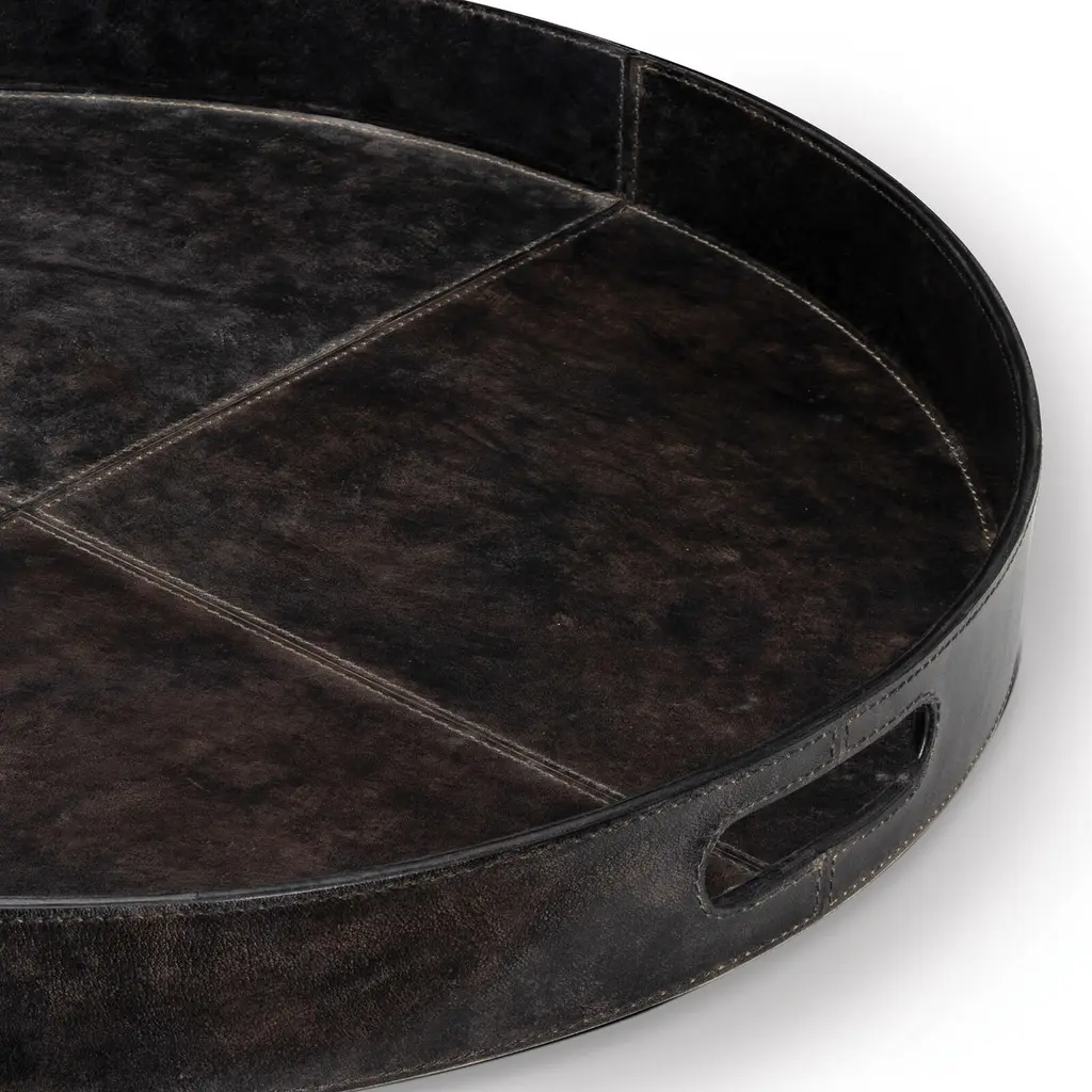Handcrafted from genuine leather with a contemporary aesthetic, this circular tray combines style with practicality. The Derby is versatile, serving as an excellent storage solution or a chic addition to your tablescape.