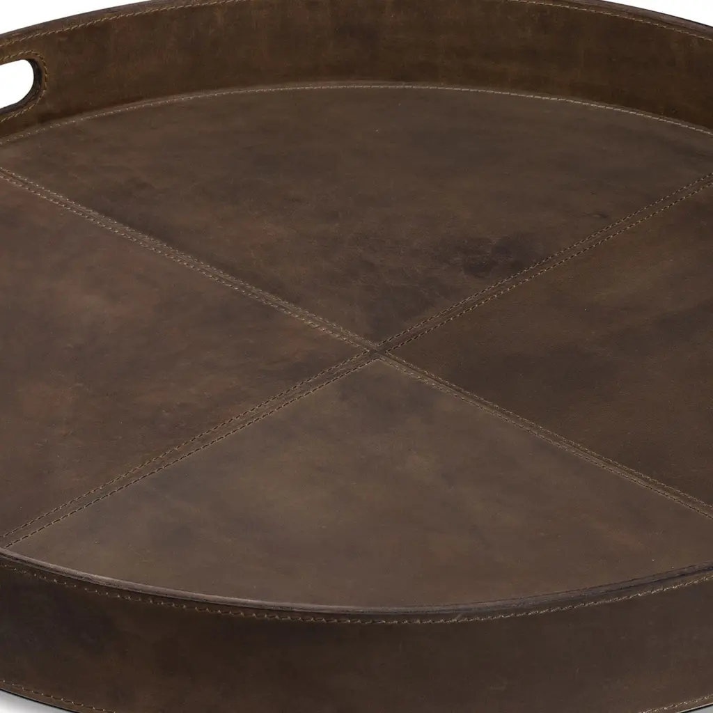 Handcrafted from genuine leather with a contemporary aesthetic, this circular tray combines style with practicality. The Derby is versatile, serving as an excellent storage solution or a chic addition to your tablescape.
