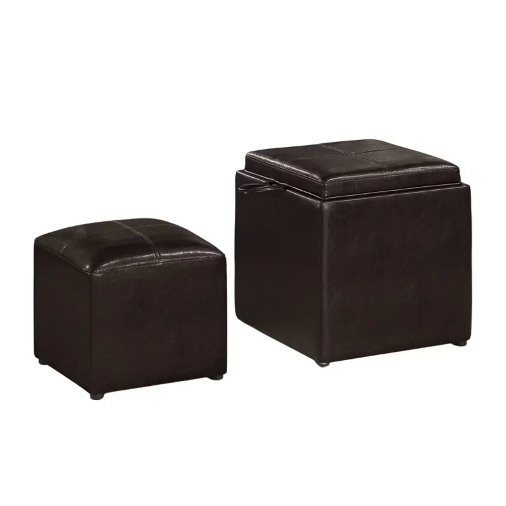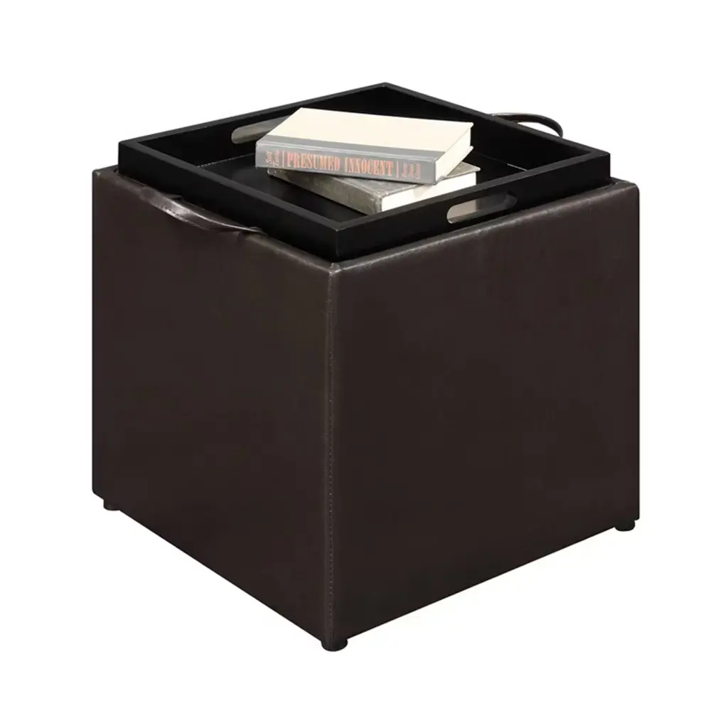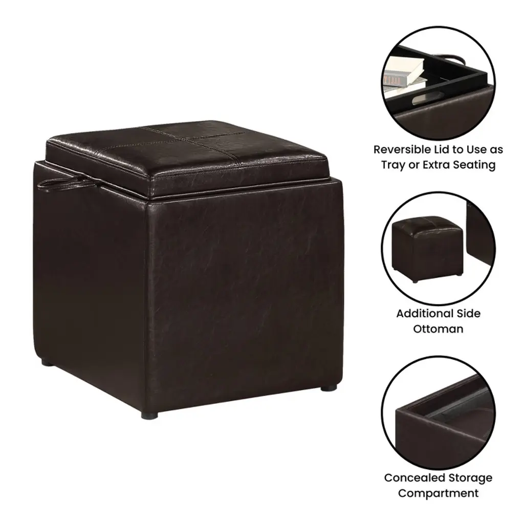 Designs4comfort Park Avenue Storage Single Ottoman With Stool And Reversible Tray Espresso - Breighton Home: Vegan Leather, No Assembly Required