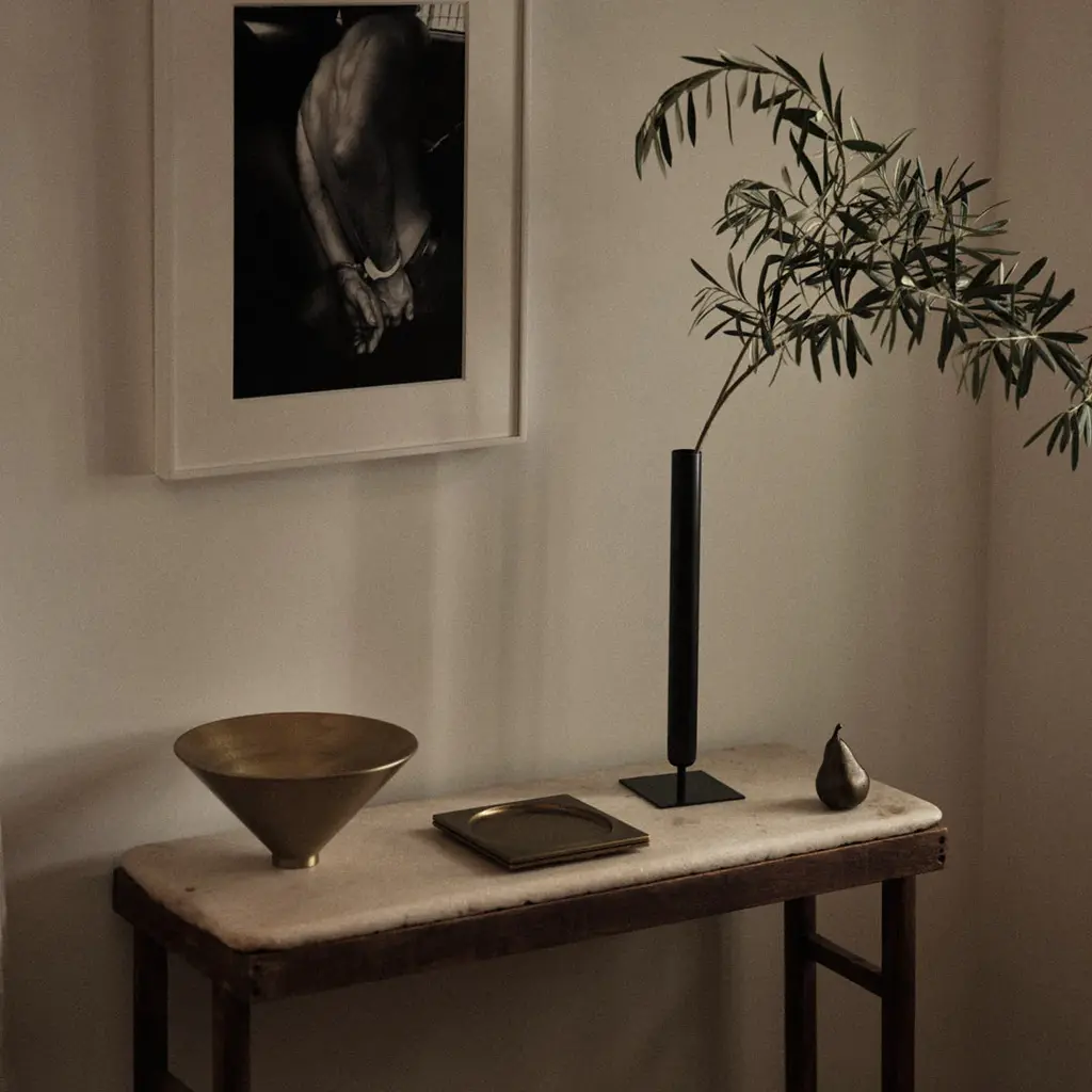 A stylish statement piece on a desk, a coffee table or a dining table – for keys, incense, candles or more – the Divot Tray profiles serene, graphic shapes. Turning a humble material into a refined object with a timeless expression, the cast metal design has a beautiful brass finish.